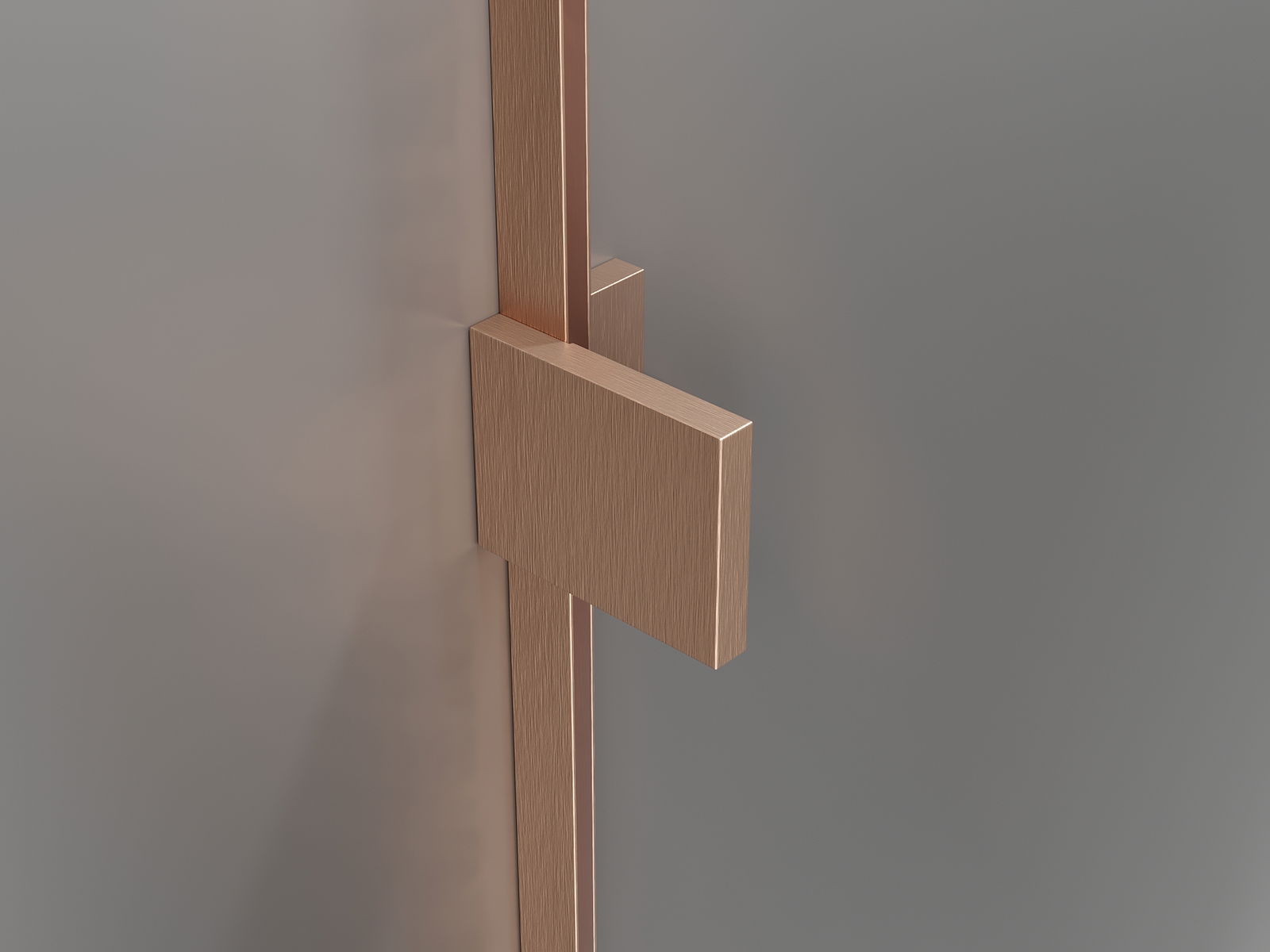 Οι σφιγκτήρες και οι μεντεσέδες είναι κατασκευασμένοι από πολύ ανθεκτικό ορείχαλκο και επιπλέον δημιουργούν μια ευθυγραμμισμένη επιφάνεια γυαλιού. Είναι μια εξαιρετική επιλογή που συνδυάζει κομψότητα, ανθεκτικότητα και σύγχρονο σχεδιασμό. Χάρη σε αυτές τις λύσεις, η ντουζιέρα κερδίζει σε αισθητική και ταυτόχρονα διευκολύνουν τη διατήρηση της καθαριότητας.