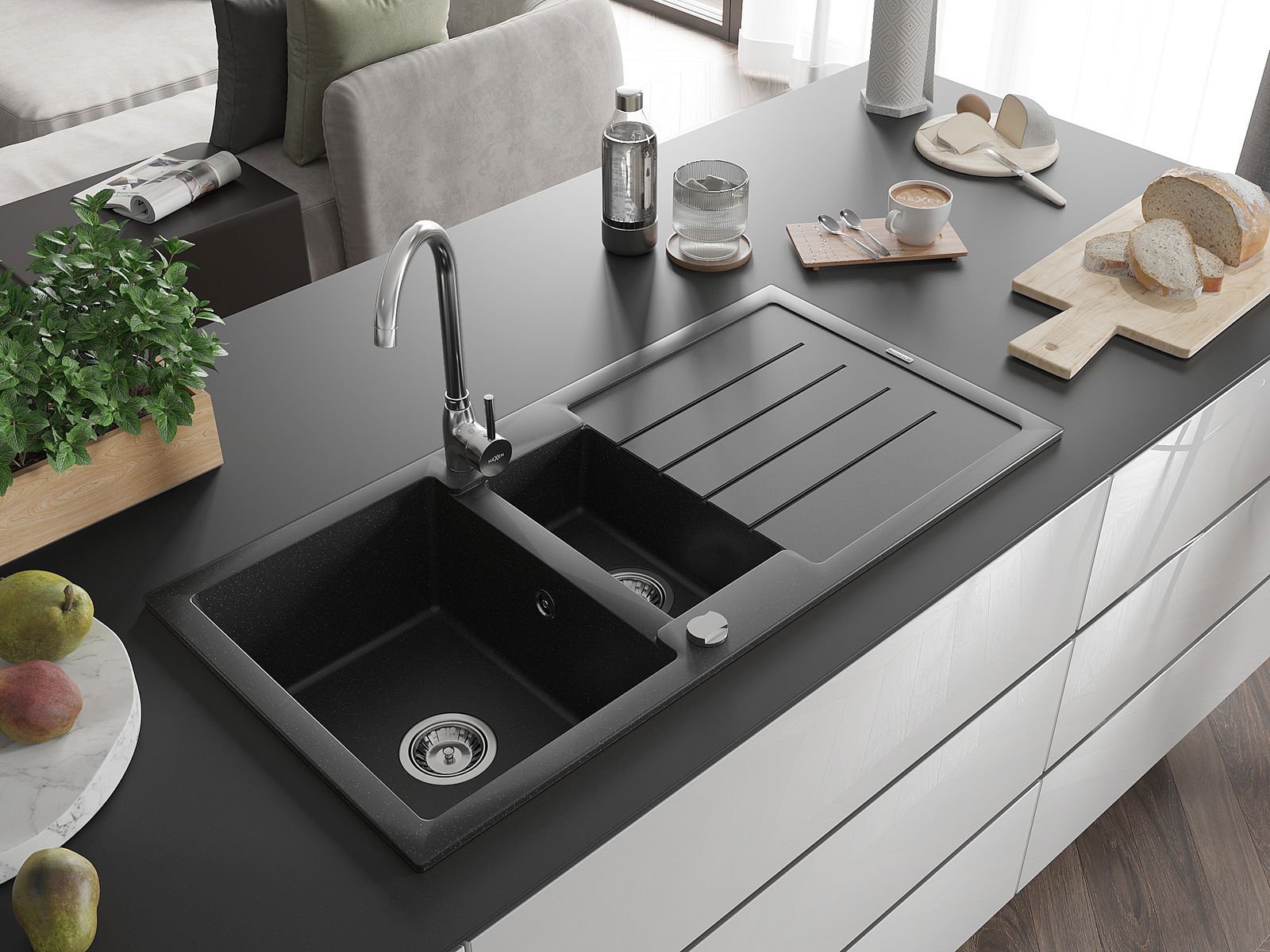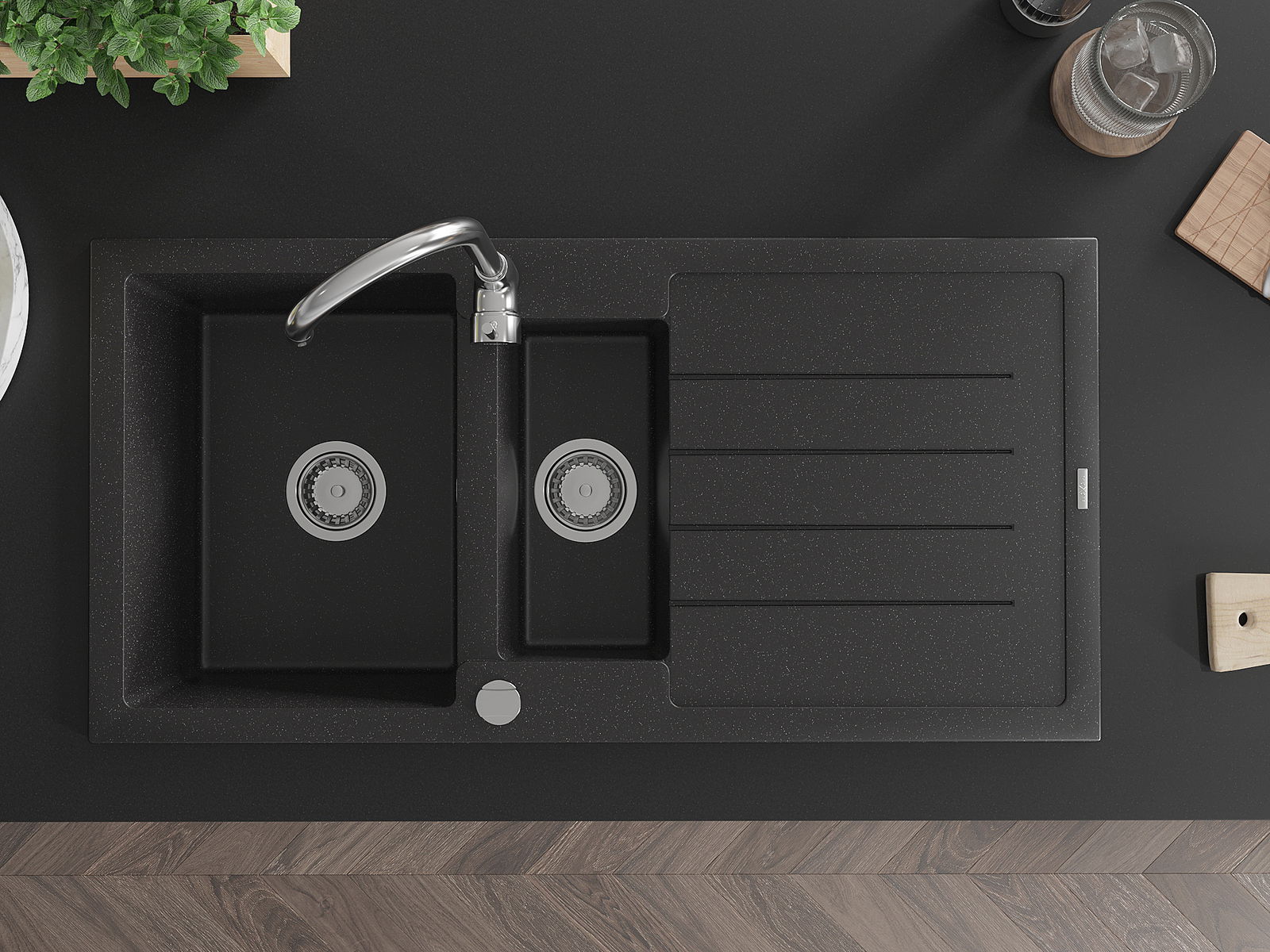 Ο νεροχύτης κατασκευάστηκε από υψηλής ποιότητας γρανίτη. Αποτελεί μια κομψή, και κυρίως πρακτική προσθήκη για κάθε κουζίνα, ανεξάρτητα από το στυλ της. Η υψηλή ποιότητα και η αντοχή του γρανίτη εξασφαλίζουν πολυετή χρήση.