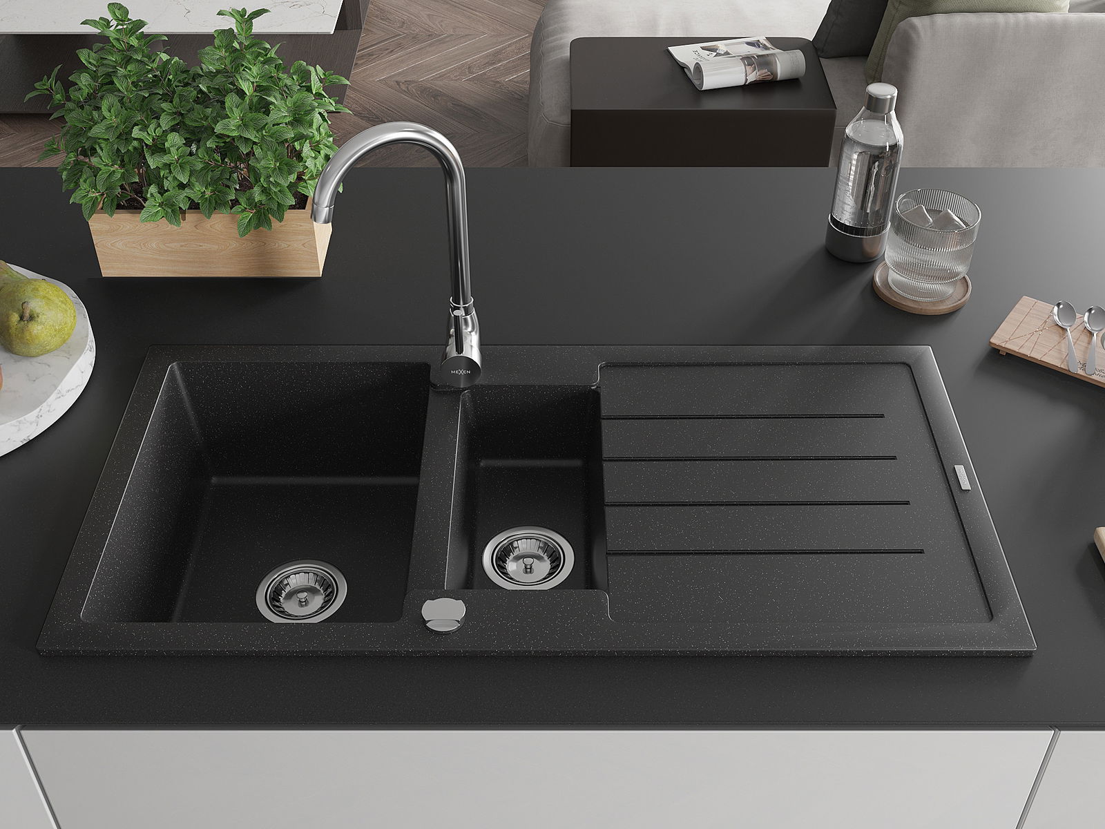 Mexen Andres νεροχύτης γρανίτης 1,5-θαλάμων με στήριγμα και μπαταρία