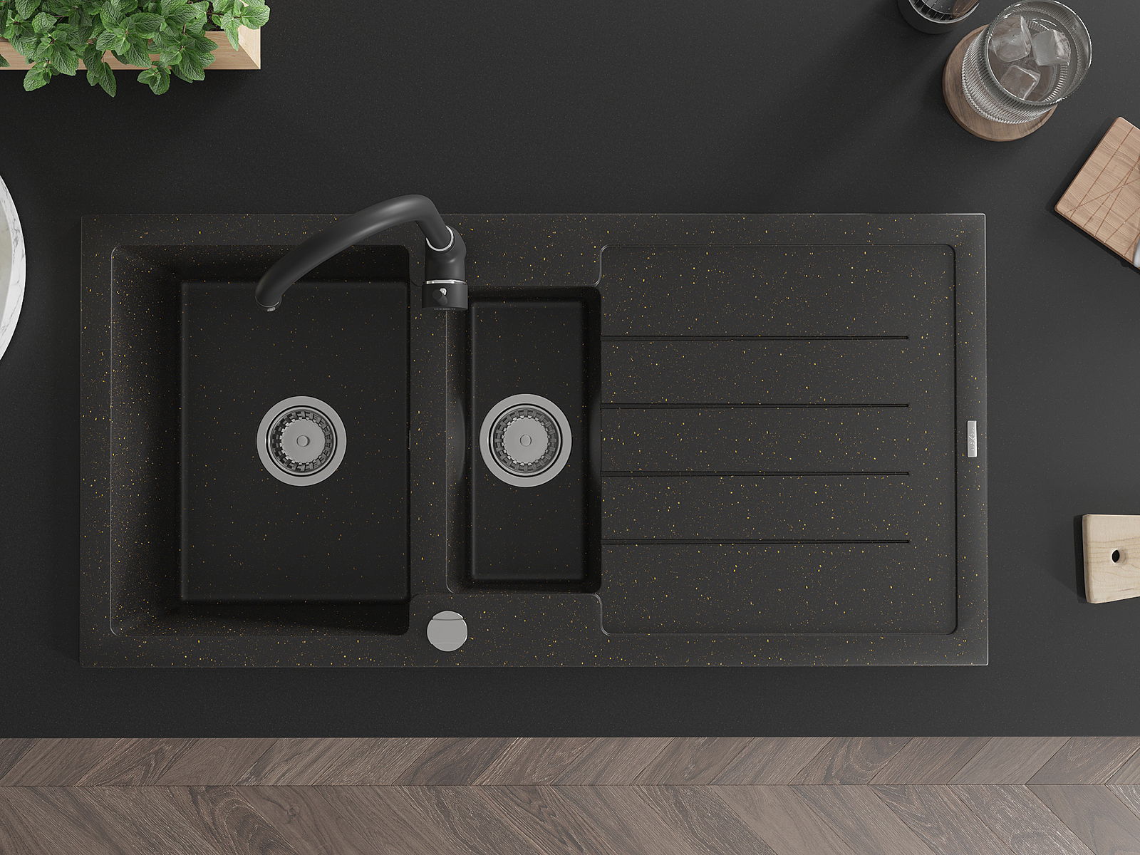 Mexen Andres νεροχύτης γρανίτης 1,5-θαλάμων με στραγγιστήρι και μπαταρία
