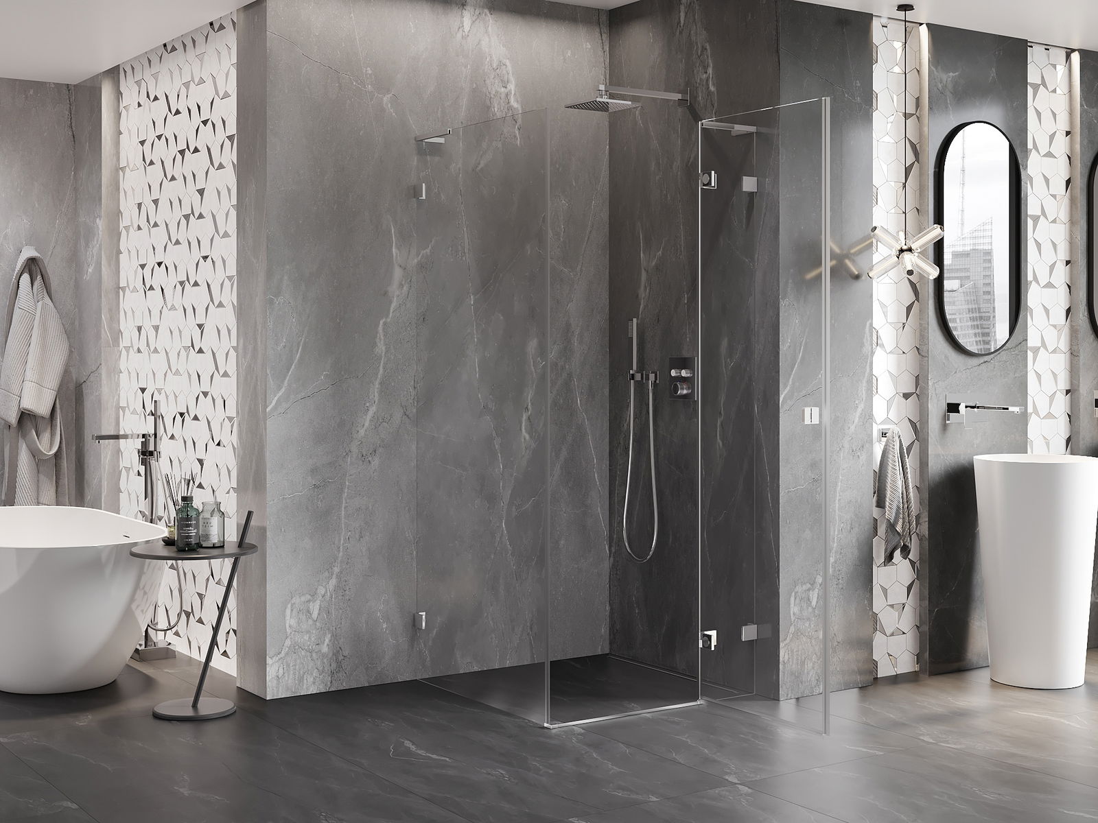 Οι σφιγκτήρες και οι μεντεσέδες είναι κατασκευασμένοι από πολύ ανθεκτικό ορείχαλκο και επιπλέον δημιουργούν μια ευθυγραμμισμένη επιφάνεια γυαλιού. Είναι μια εξαιρετική επιλογή που συνδυάζει κομψότητα, ανθεκτικότητα και σύγχρονο σχεδιασμό. Χάρη σε αυτές τις λύσεις, η ντουζιέρα κερδίζει σε αισθητική και ταυτόχρονα διευκολύνουν τη διατήρηση της καθαριότητας.