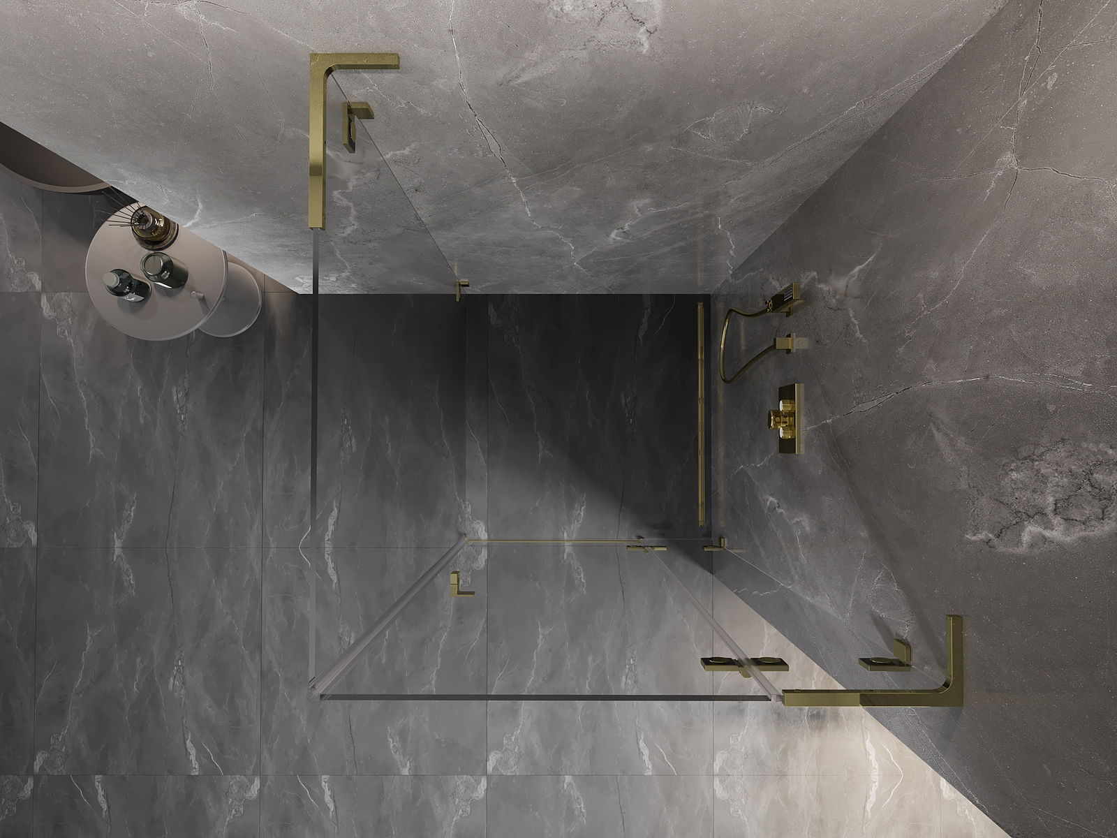 Οι σφιγκτήρες και οι μεντεσέδες είναι κατασκευασμένοι από πολύ ανθεκτικό ορείχαλκο και επιπλέον δημιουργούν μια ευθυγραμμισμένη επιφάνεια γυαλιού. Είναι μια εξαιρετική επιλογή που συνδυάζει κομψότητα, ανθεκτικότητα και σύγχρονο σχεδιασμό. Χάρη σε αυτές τις λύσεις, η ντουζιέρα κερδίζει σε αισθητική και ταυτόχρονα διευκολύνουν τη διατήρηση της καθαριότητας.
