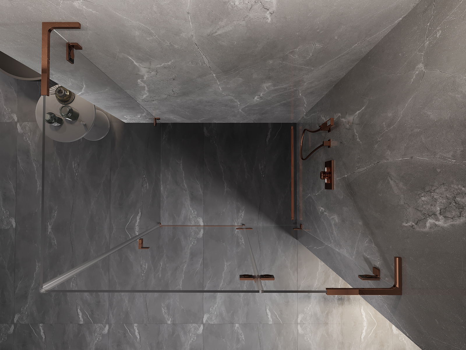 Οι σφιγκτήρες και οι μεντεσέδες είναι κατασκευασμένοι από πολύ ανθεκτικό ορείχαλκο και επιπλέον δημιουργούν μια ευθυγραμμισμένη επιφάνεια γυαλιού. Είναι μια εξαιρετική επιλογή που συνδυάζει κομψότητα, ανθεκτικότητα και σύγχρονο σχεδιασμό. Χάρη σε αυτές τις λύσεις, η ντουζιέρα κερδίζει σε αισθητική και ταυτόχρονα διευκολύνουν τη διατήρηση της καθαριότητας.