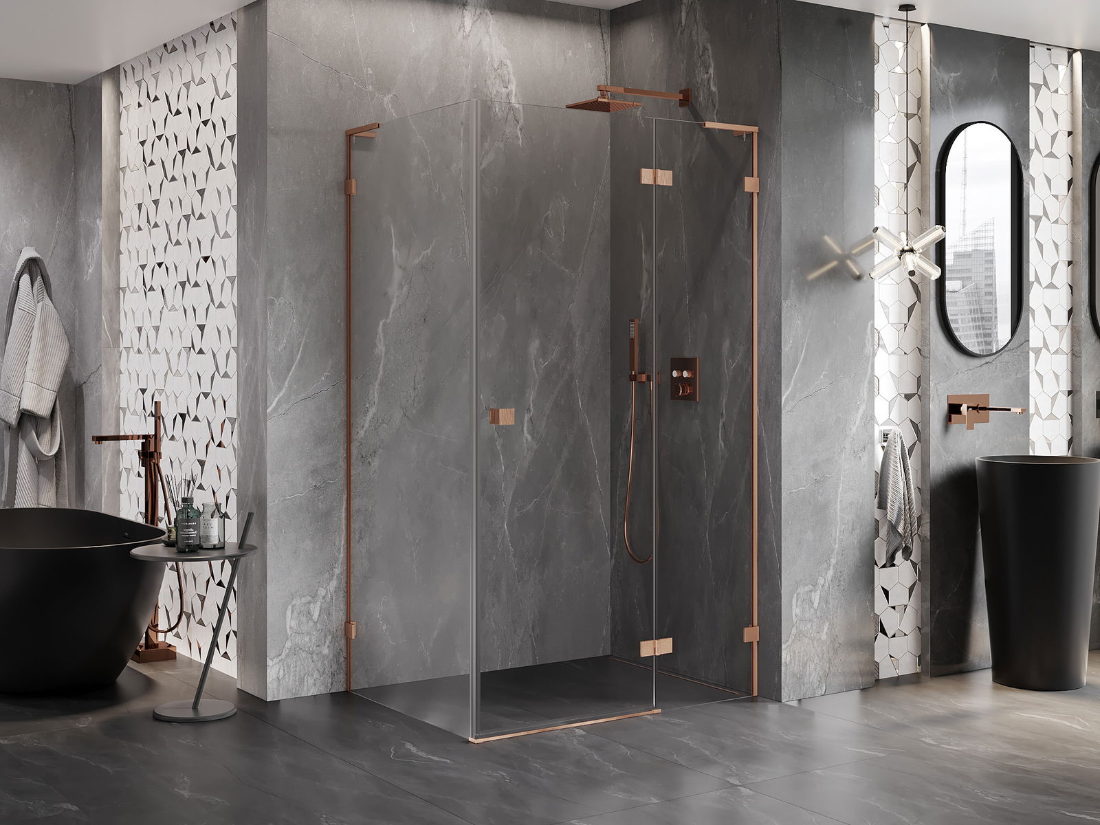 Οι σφιγκτήρες και οι μεντεσέδες είναι κατασκευασμένοι από πολύ ανθεκτικό ορείχαλκο και επιπλέον δημιουργούν μια ευθυγραμμισμένη επιφάνεια γυαλιού. Είναι μια εξαιρετική επιλογή που συνδυάζει κομψότητα, ανθεκτικότητα και σύγχρονο σχεδιασμό. Χάρη σε αυτές τις λύσεις, η ντουζιέρα κερδίζει σε αισθητική και ταυτόχρονα διευκολύνουν τη διατήρηση της καθαριότητας.