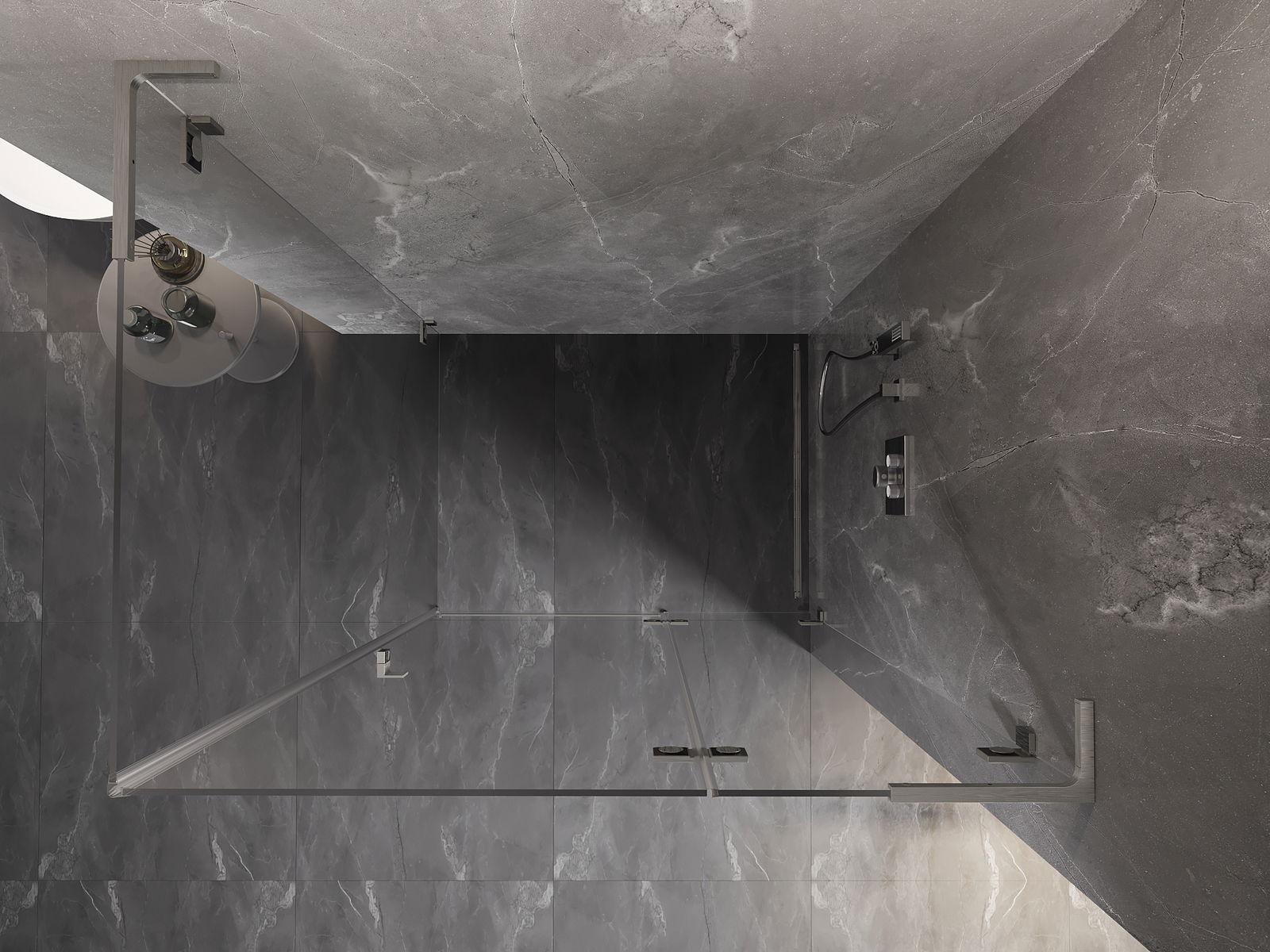 Οι σφιγκτήρες και οι μεντεσέδες είναι κατασκευασμένοι από πολύ ανθεκτικό ορείχαλκο και επιπλέον δημιουργούν μια ευθυγραμμισμένη επιφάνεια γυαλιού. Είναι μια εξαιρετική επιλογή που συνδυάζει κομψότητα, ανθεκτικότητα και σύγχρονο σχεδιασμό. Χάρη σε αυτές τις λύσεις, η ντουζιέρα κερδίζει σε αισθητική και ταυτόχρονα διευκολύνουν τη διατήρηση της καθαριότητας.