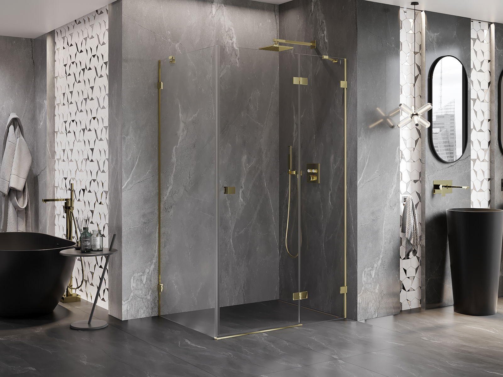 Mexen Lunar καμπίνα ντους δεξιά ανακλινόμενη 95 x 90 εκ., διαφανής, χρυσή