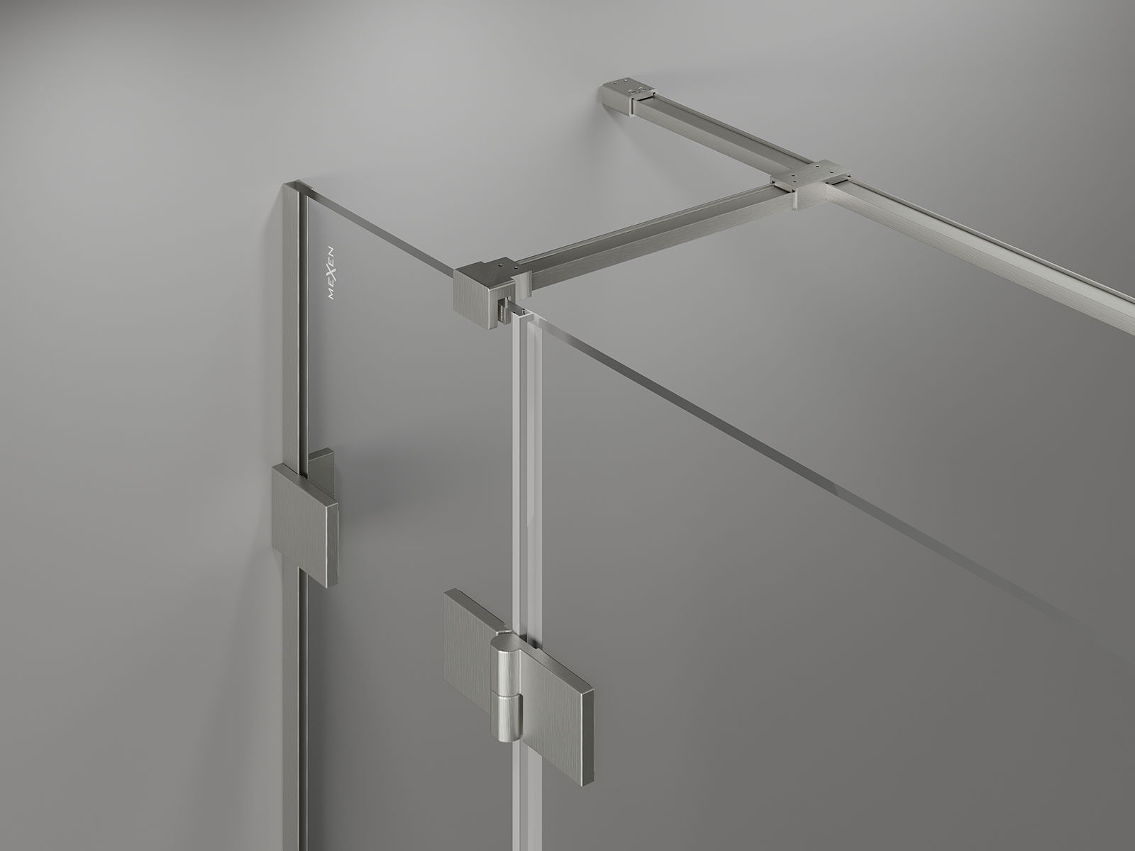 Οι σφιγκτήρες και οι μεντεσέδες είναι κατασκευασμένοι από πολύ ανθεκτικό ορείχαλκο και επιπλέον δημιουργούν μια ευθυγραμμισμένη επιφάνεια γυαλιού. Είναι μια εξαιρετική επιλογή που συνδυάζει κομψότητα, ανθεκτικότητα και σύγχρονο σχεδιασμό. Χάρη σε αυτές τις λύσεις, η ντουζιέρα κερδίζει σε αισθητική και ταυτόχρονα διευκολύνουν τη διατήρηση της καθαριότητας.