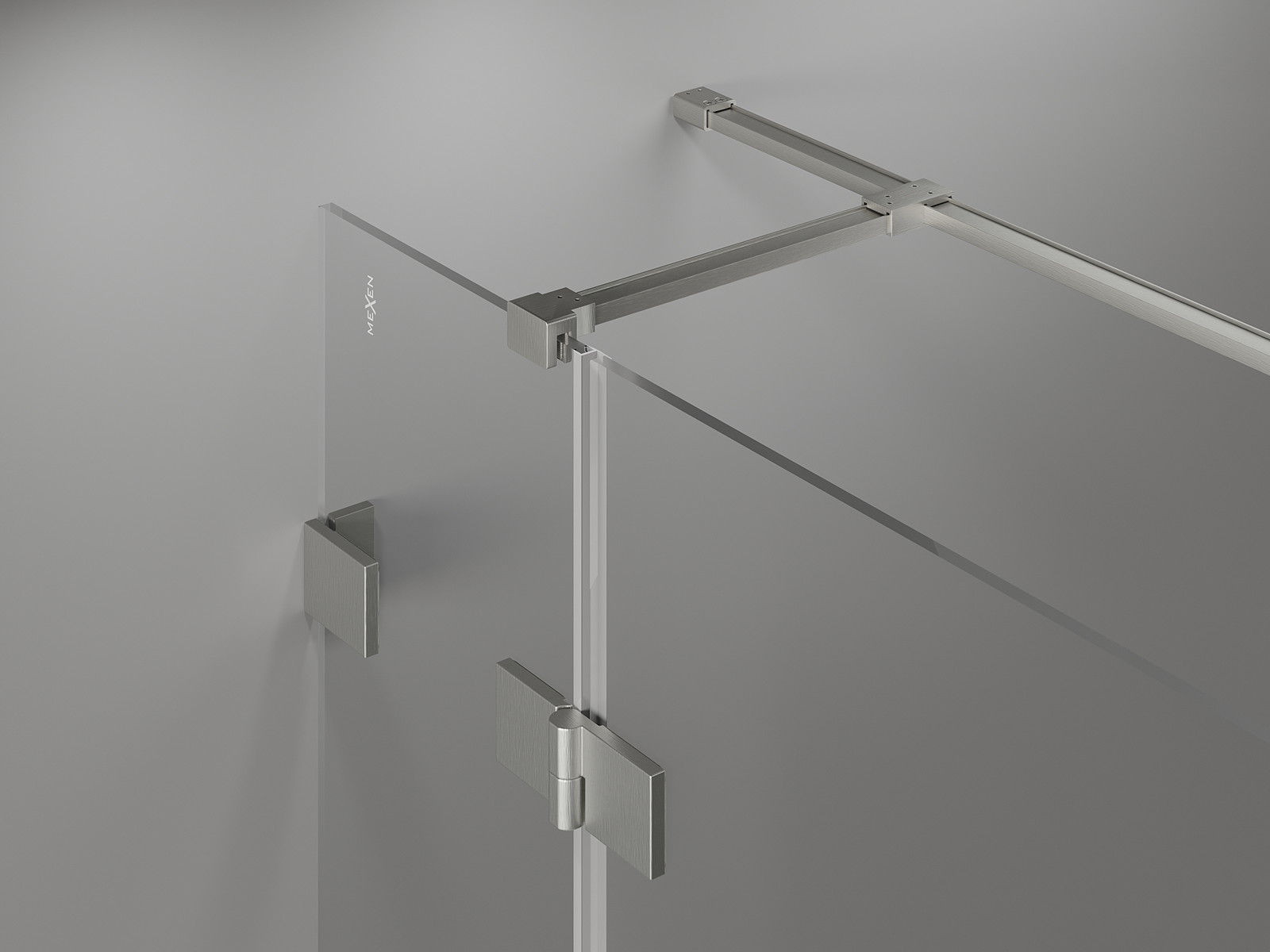 Οι σφιγκτήρες και οι μεντεσέδες είναι κατασκευασμένοι από πολύ ανθεκτικό ορείχαλκο και επιπλέον δημιουργούν μια ευθυγραμμισμένη επιφάνεια γυαλιού. Είναι μια εξαιρετική επιλογή που συνδυάζει κομψότητα, ανθεκτικότητα και σύγχρονο σχεδιασμό. Χάρη σε αυτές τις λύσεις, η ντουζιέρα κερδίζει σε αισθητική και ταυτόχρονα διευκολύνουν τη διατήρηση της καθαριότητας.