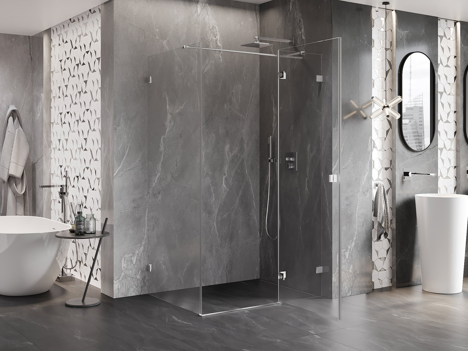 Οι σφιγκτήρες και οι μεντεσέδες είναι κατασκευασμένοι από πολύ ανθεκτικό ορείχαλκο και επιπλέον δημιουργούν μια ευθυγραμμισμένη επιφάνεια γυαλιού. Είναι μια εξαιρετική επιλογή που συνδυάζει κομψότητα, ανθεκτικότητα και σύγχρονο σχεδιασμό. Χάρη σε αυτές τις λύσεις, η ντουζιέρα κερδίζει σε αισθητική και ταυτόχρονα διευκολύνουν τη διατήρηση της καθαριότητας.