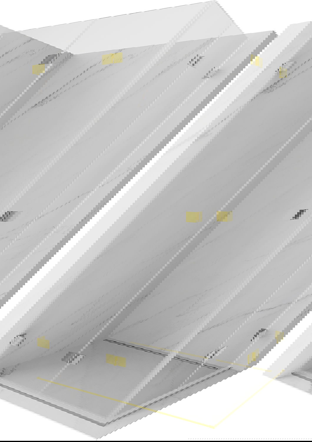 Οι σφιγκτήρες και οι μεντεσέδες είναι κατασκευασμένοι από πολύ ανθεκτικό ορείχαλκο και επιπλέον δημιουργούν μια ευθυγραμμισμένη επιφάνεια γυαλιού. Είναι μια εξαιρετική επιλογή που συνδυάζει κομψότητα, ανθεκτικότητα και σύγχρονο σχεδιασμό. Χάρη σε αυτές τις λύσεις, η ντουζιέρα κερδίζει σε αισθητική και ταυτόχρονα διευκολύνουν τη διατήρηση της καθαριότητας.