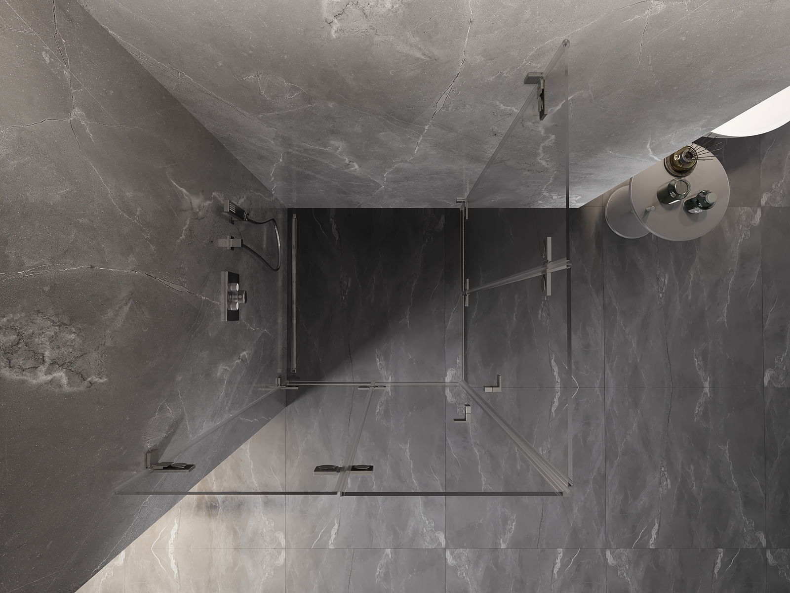 Mexen Lunar-F Διπλή πτυσσόμενη καμπίνα ντους 100 x 100 cm, διαφανής, βουρτσισμένο