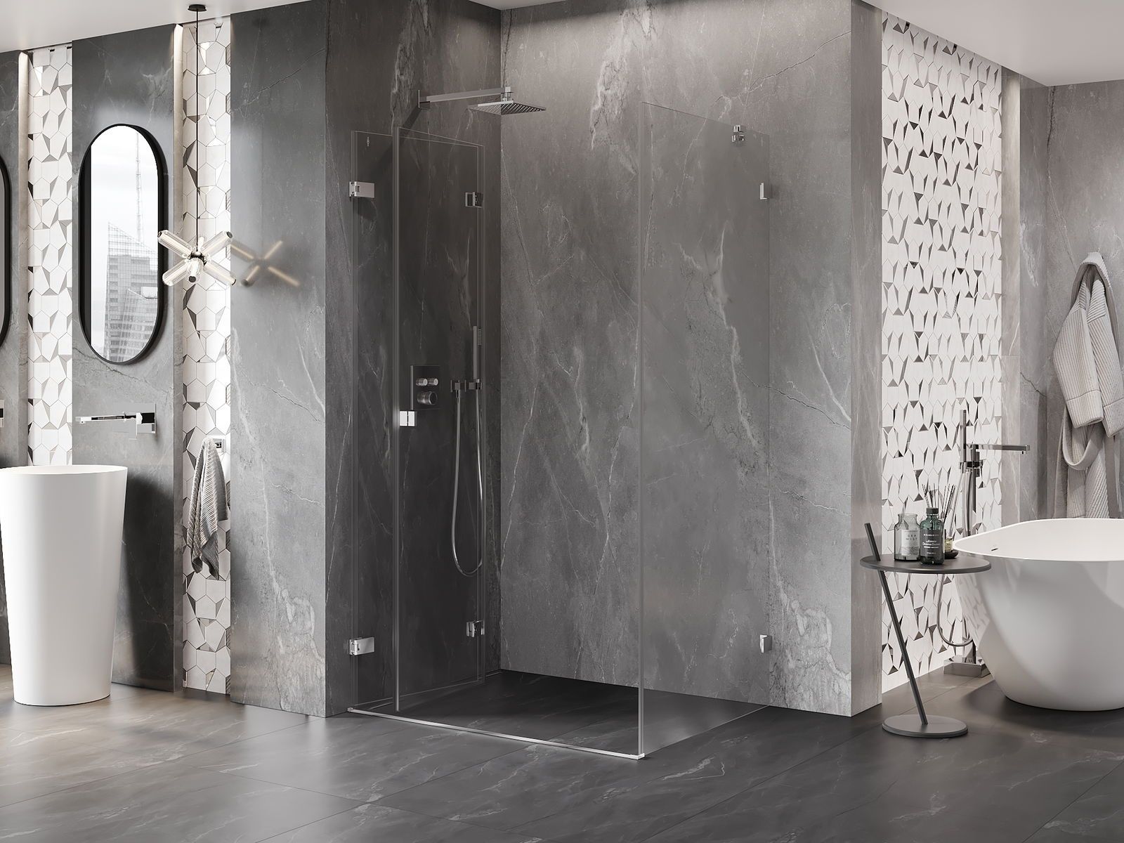 Η δυνατότητα πτύχωσης των πορτών, τόσο προς τα έξω όσο και προς τα μέσα, επιτρέπει την απόκτηση περισσότερου χώρου όταν δεν χρησιμοποιείται το ντους. Αυτή είναι μια ιδανική λύση για μικρότερα μπάνια, αξιοποιώντας στο μέγιστο το διαθέσιμο χώρο.