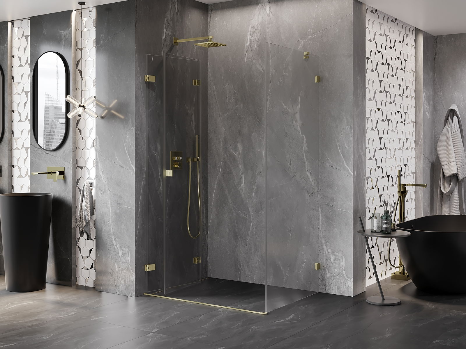 Οι σφιγκτήρες και οι μεντεσέδες είναι κατασκευασμένοι από πολύ ανθεκτικό ορείχαλκο και επιπλέον δημιουργούν μια ευθυγραμμισμένη επιφάνεια γυαλιού. Είναι μια εξαιρετική επιλογή που συνδυάζει κομψότητα, ανθεκτικότητα και σύγχρονο σχεδιασμό. Χάρη σε αυτές τις λύσεις, η ντουζιέρα κερδίζει σε αισθητική και ταυτόχρονα διευκολύνουν τη διατήρηση της καθαριότητας.