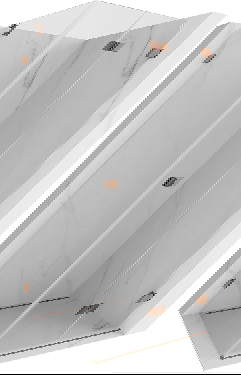 Οι σφιγκτήρες και οι μεντεσέδες είναι κατασκευασμένοι από πολύ ανθεκτικό ορείχαλκο και επιπλέον δημιουργούν μια ευθυγραμμισμένη επιφάνεια γυαλιού. Είναι μια εξαιρετική επιλογή που συνδυάζει κομψότητα, ανθεκτικότητα και σύγχρονο σχεδιασμό. Χάρη σε αυτές τις λύσεις, η ντουζιέρα κερδίζει σε αισθητική και ταυτόχρονα διευκολύνουν τη διατήρηση της καθαριότητας.