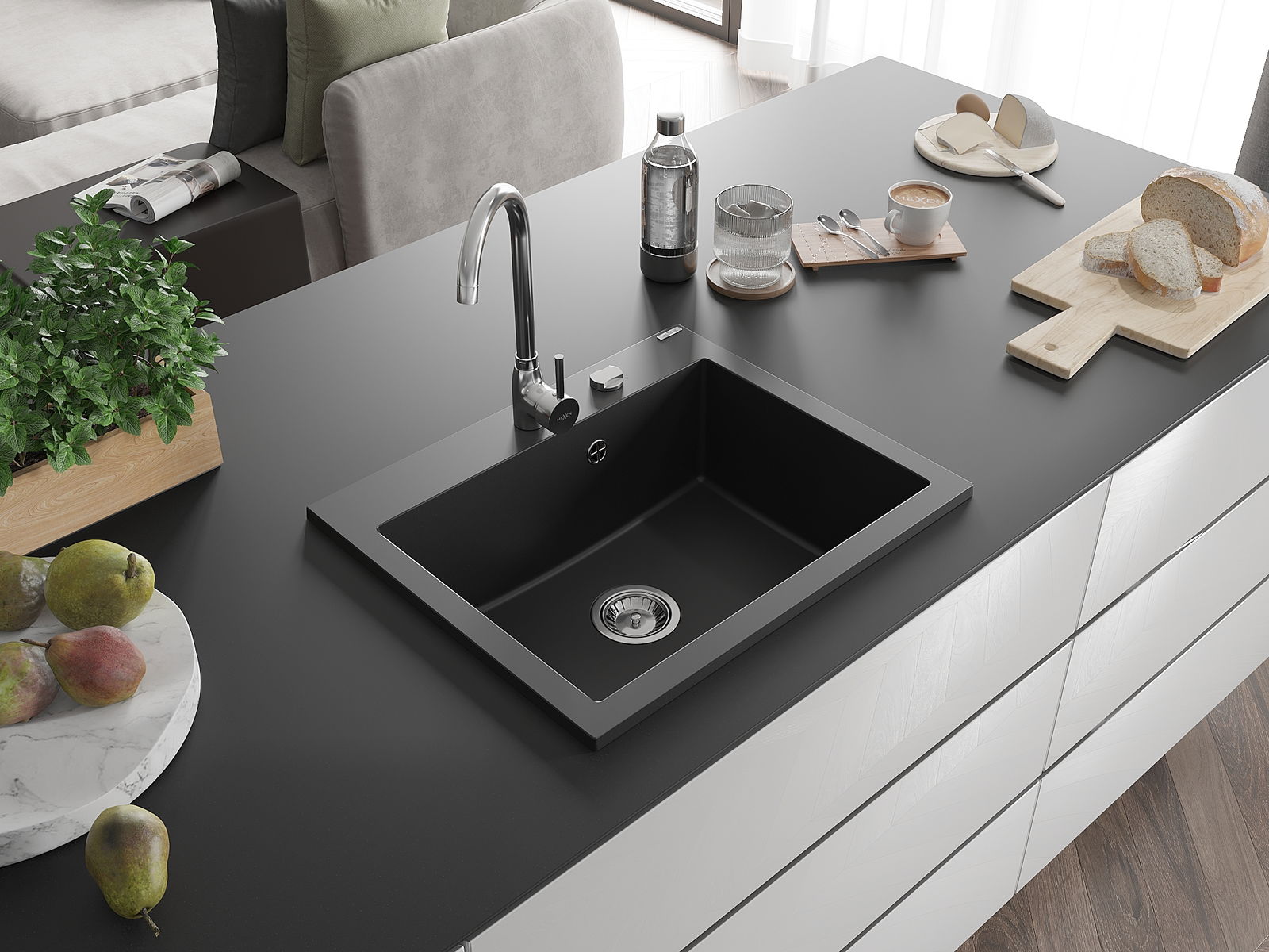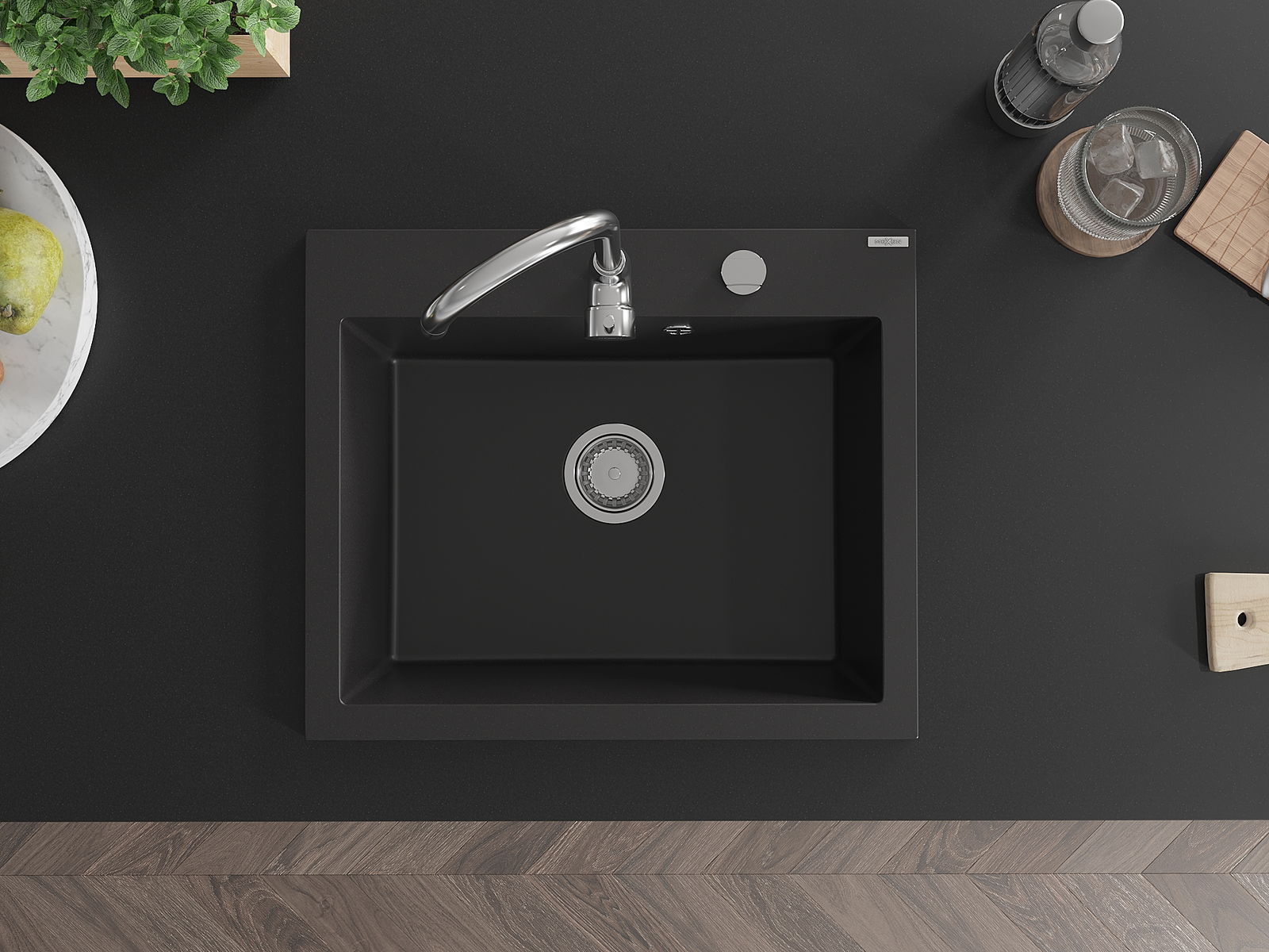Mexen Elix νεροχύτης από γρανίτη 1-διαμέρισμα 600 x 500 mm, μαύρος, σιφόνι