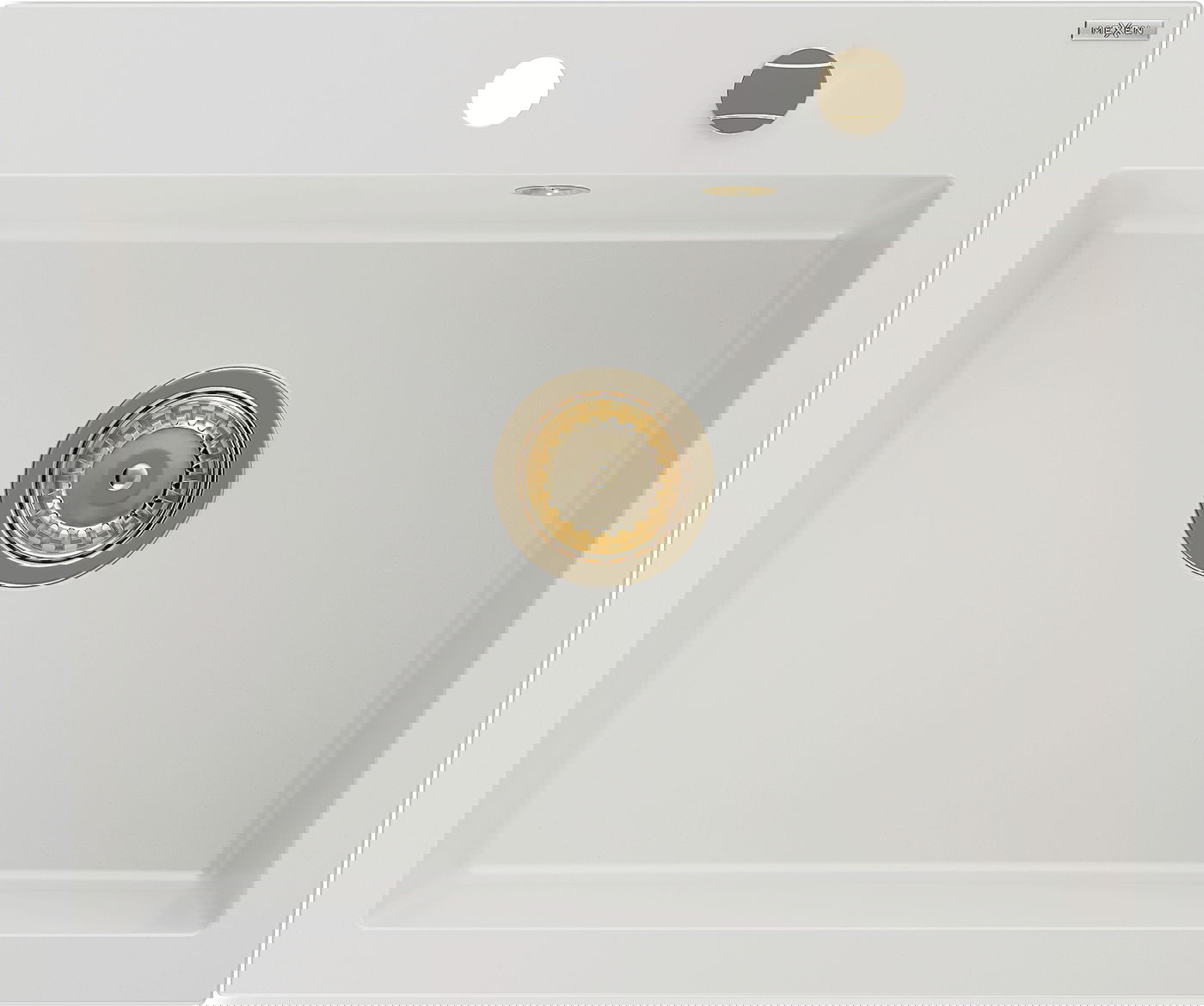 Mexen Elix νεροχύτης γρανίτης 1-θέσιος 600 x 500 mm, λευκός, χρυσό σιφόνι