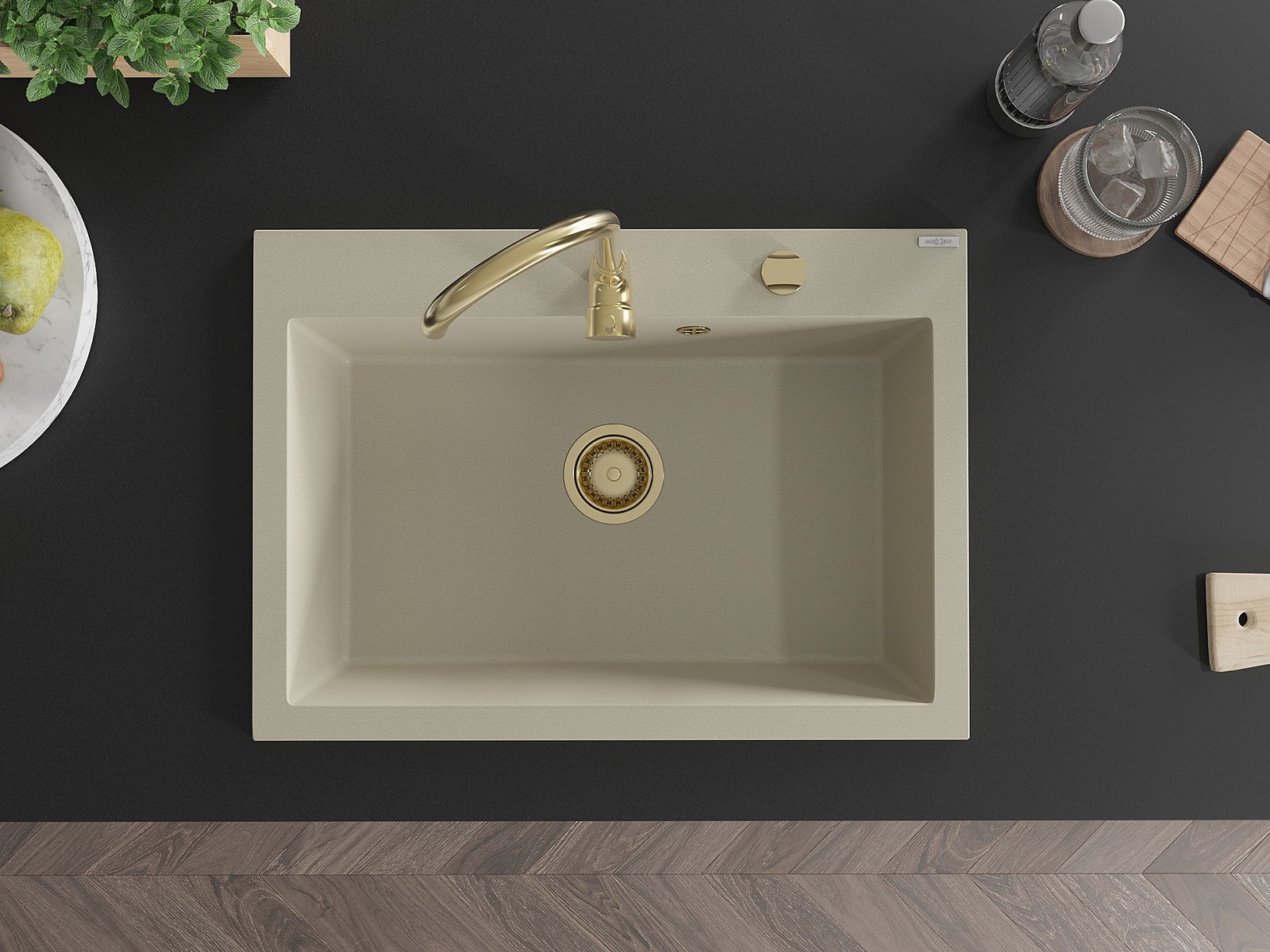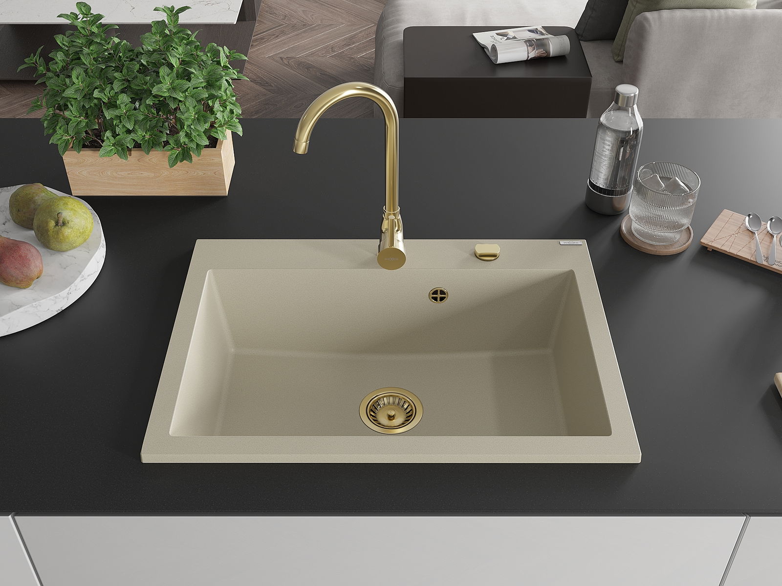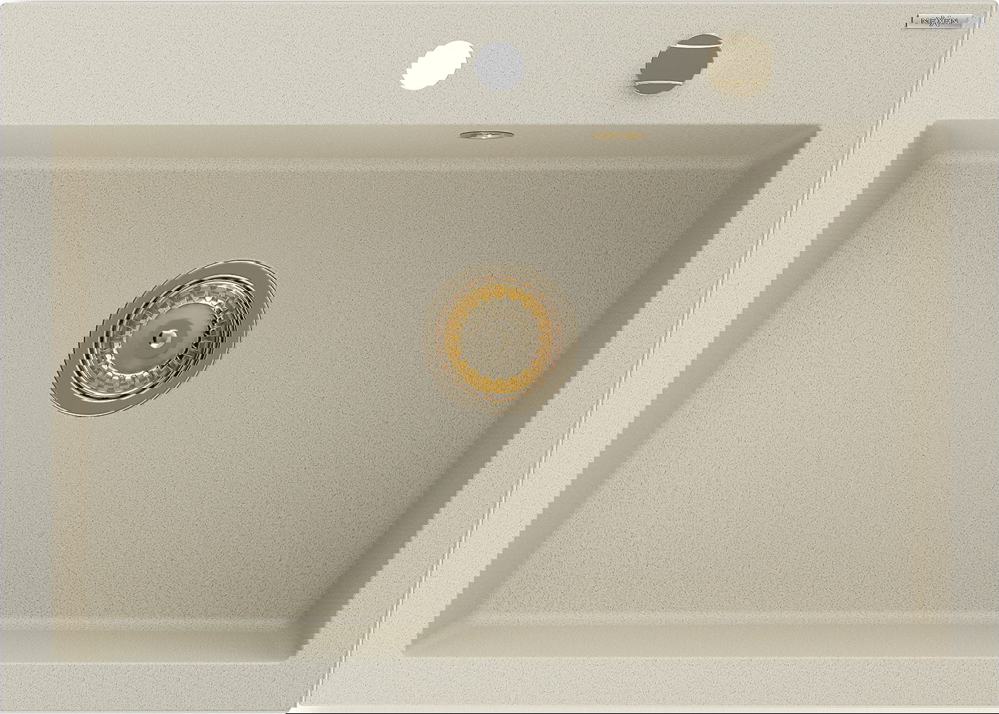 Mexen Elix νεροχύτης γρανίτης 1-διαμέρισμα 700 x 500 mm, μπεζ, σιφόνι χρυσό