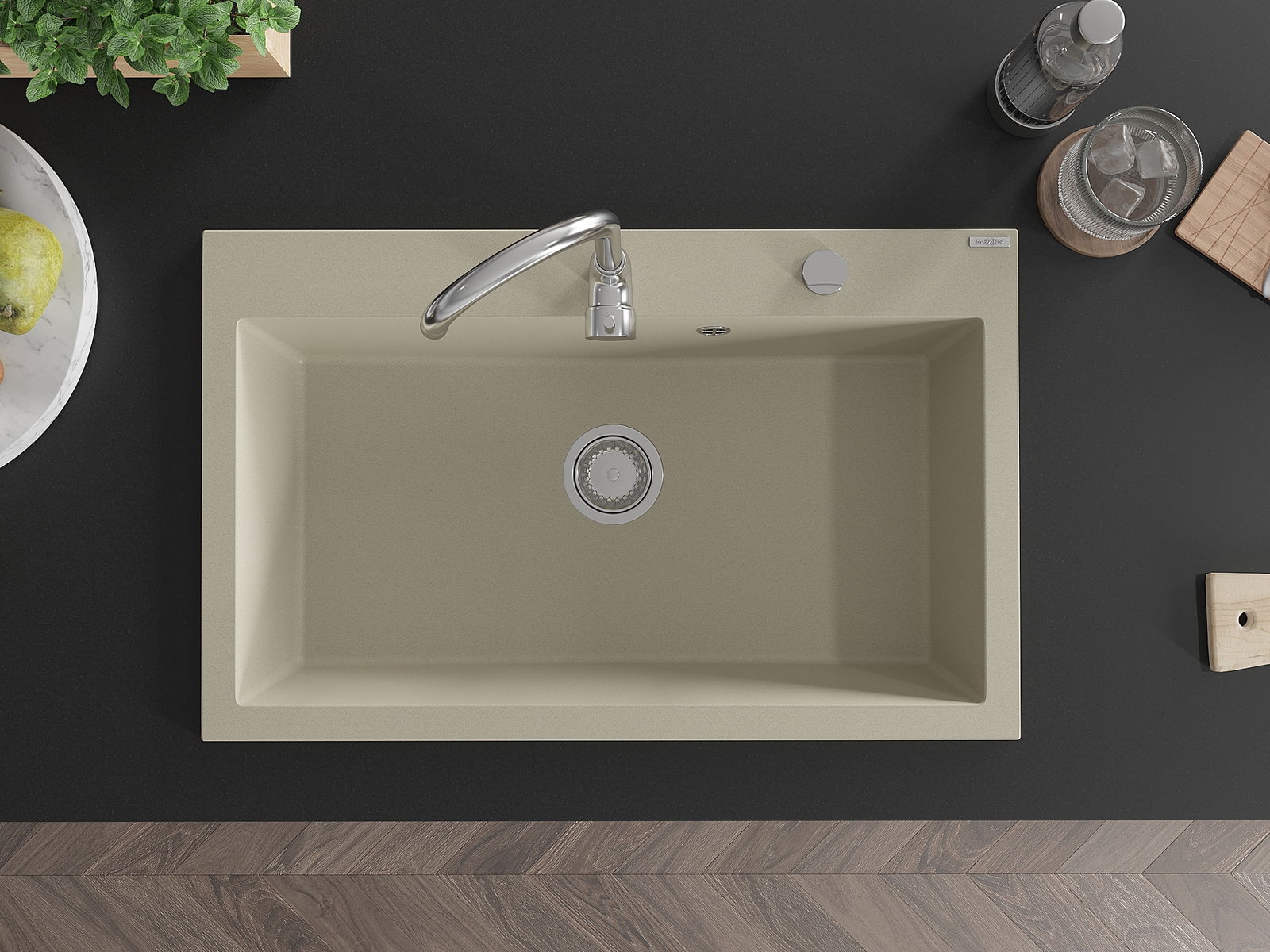Mexen Elix Νεροχύτης Γρανίτης Μονής Θέσης 800 x 500 mm, Μπεζ, Σιφόνι Χρώμιο