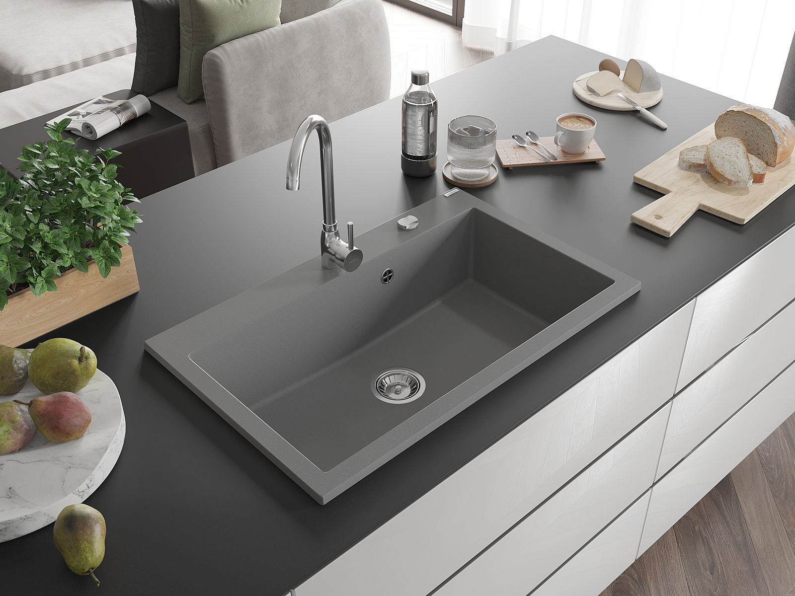 Ο νεροχύτης κατασκευάστηκε από υψηλής ποιότητας γρανίτη. Αποτελεί μια κομψή, και κυρίως πρακτική προσθήκη για κάθε κουζίνα, ανεξάρτητα από το στυλ της. Η υψηλή ποιότητα και η αντοχή του γρανίτη εξασφαλίζουν πολυετή χρήση.