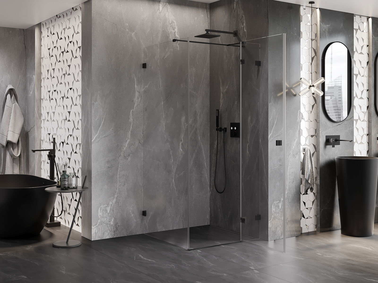 Οι σφιγκτήρες και οι μεντεσέδες είναι κατασκευασμένοι από πολύ ανθεκτικό ορείχαλκο και επιπλέον δημιουργούν μια ευθυγραμμισμένη επιφάνεια γυαλιού. Είναι μια εξαιρετική επιλογή που συνδυάζει κομψότητα, ανθεκτικότητα και σύγχρονο σχεδιασμό. Χάρη σε αυτές τις λύσεις, η ντουζιέρα κερδίζει σε αισθητική και ταυτόχρονα διευκολύνουν τη διατήρηση της καθαριότητας.