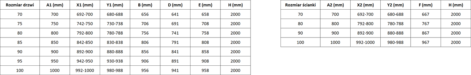 Πάχος γυαλιού: πόρτα 6 mm, τοίχος 8 mm