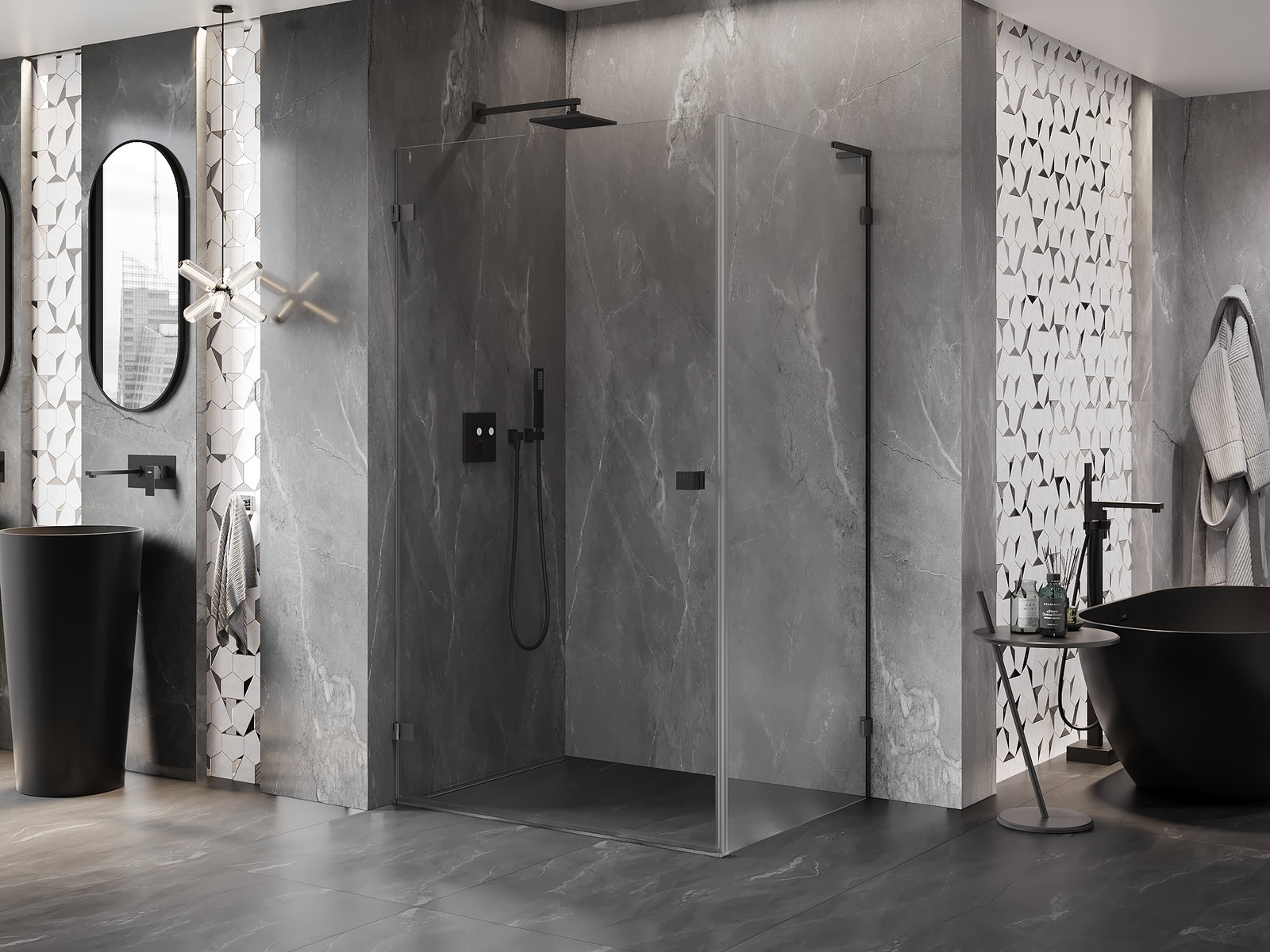 Η πρακτική και άνετη λαβή κατασκευάζεται από ανθεκτικό και αντοχής μέταλλο. Ο μοντέρνος σχεδιασμός σε συνδυασμό με το φινίρισμα που ταιριάζει με το χρώμα των προφίλ προσδίδει στο σύνολο μια σύγχρονη και κομψή εμφάνιση, τονίζοντας την αισθητική κάθε μπάνιου.
