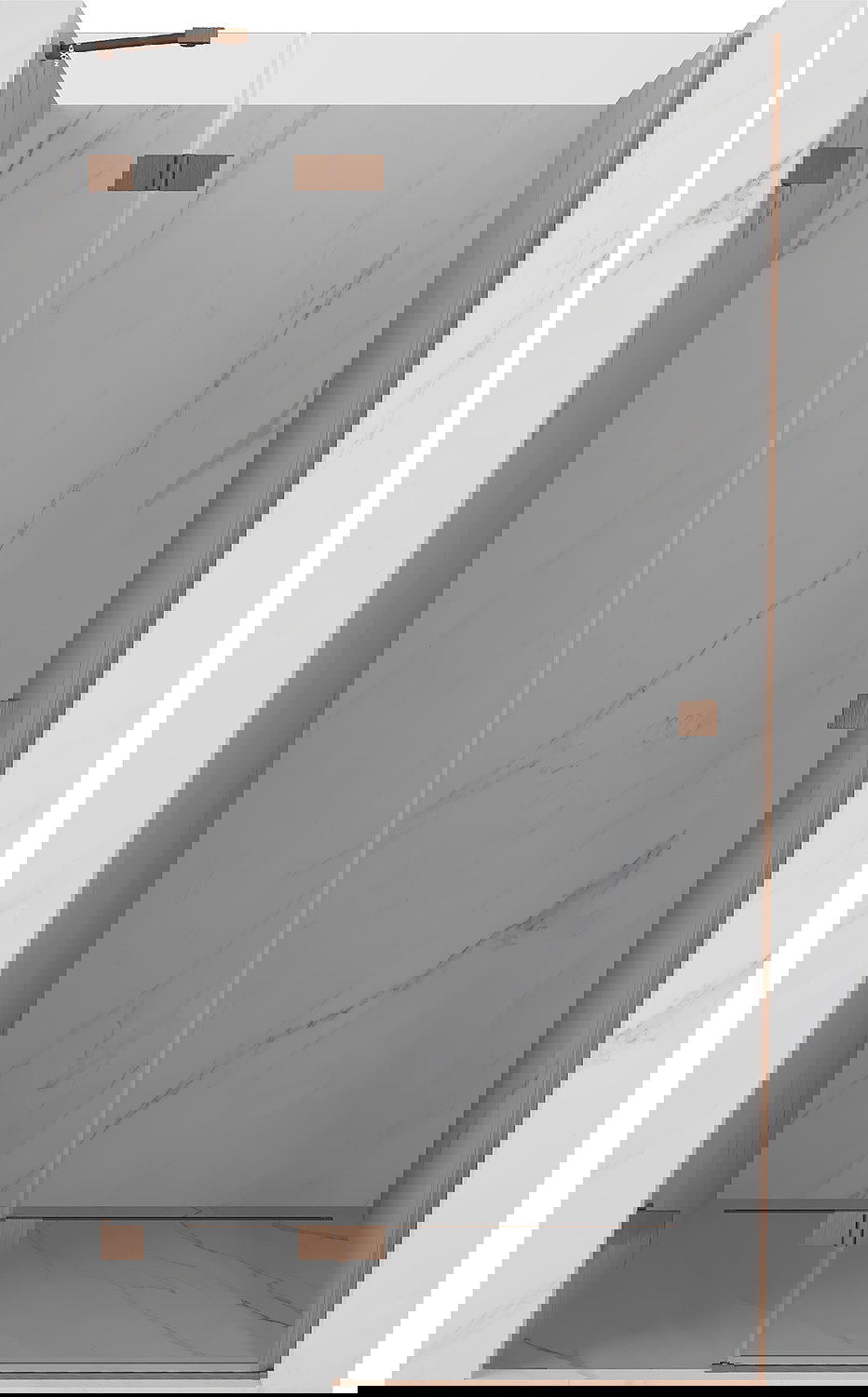 Οι σφιγκτήρες και οι μεντεσέδες είναι κατασκευασμένοι από πολύ ανθεκτικό ορείχαλκο και επιπλέον δημιουργούν μια ευθυγραμμισμένη επιφάνεια γυαλιού. Είναι μια εξαιρετική επιλογή που συνδυάζει κομψότητα, ανθεκτικότητα και σύγχρονο σχεδιασμό. Χάρη σε αυτές τις λύσεις, η ντουζιέρα κερδίζει σε αισθητική και ταυτόχρονα διευκολύνουν τη διατήρηση της καθαριότητας.