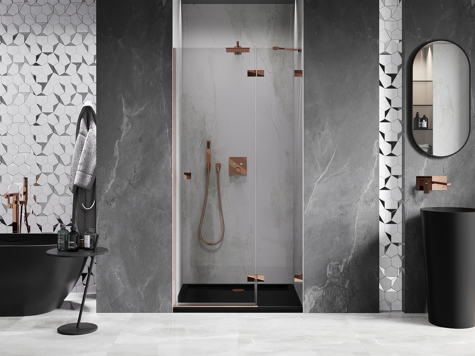 Mexen Lunar δεξιά ανοιγόμενη καμπίνα ντους 90 εκ., διαφανής, ροζ χρυσό