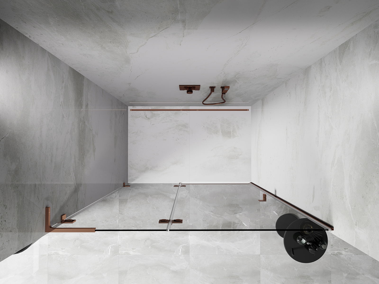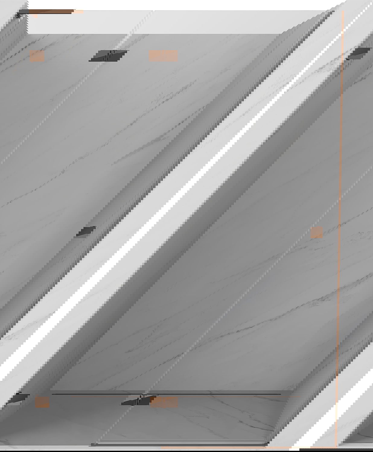 Οι σφιγκτήρες και οι μεντεσέδες είναι κατασκευασμένοι από πολύ ανθεκτικό ορείχαλκο και επιπλέον δημιουργούν μια ευθυγραμμισμένη επιφάνεια γυαλιού. Είναι μια εξαιρετική επιλογή που συνδυάζει κομψότητα, ανθεκτικότητα και σύγχρονο σχεδιασμό. Χάρη σε αυτές τις λύσεις, η ντουζιέρα κερδίζει σε αισθητική και ταυτόχρονα διευκολύνουν τη διατήρηση της καθαριότητας.