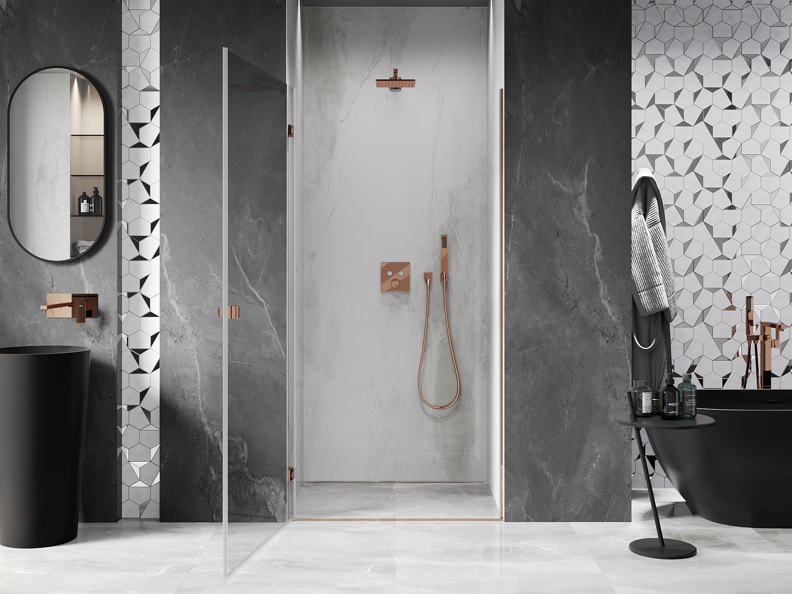 Mexen Lunar-B ανοιγόμενη αριστερή πόρτα ντουζιέρας 80 cm, διαφανής, ροζ χρυσό