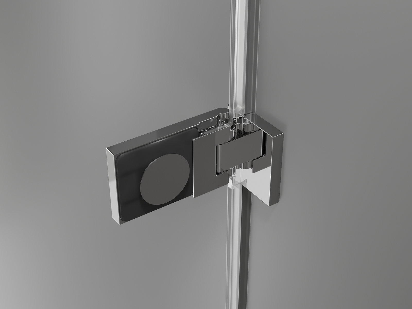 Οι σφιγκτήρες και οι μεντεσέδες είναι κατασκευασμένοι από πολύ ανθεκτικό ορείχαλκο και επιπλέον δημιουργούν μια ευθυγραμμισμένη επιφάνεια γυαλιού. Είναι μια εξαιρετική επιλογή που συνδυάζει κομψότητα, ανθεκτικότητα και σύγχρονο σχεδιασμό. Χάρη σε αυτές τις λύσεις, η ντουζιέρα κερδίζει σε αισθητική και ταυτόχρονα διευκολύνουν τη διατήρηση της καθαριότητας.