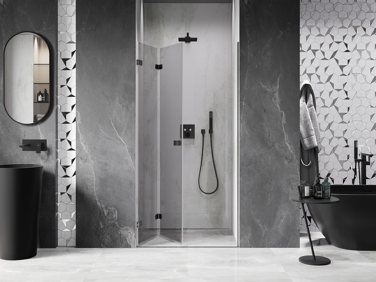 Η δυνατότητα πτύχωσης των πορτών, τόσο προς τα έξω όσο και προς τα μέσα, επιτρέπει την απόκτηση περισσότερου χώρου όταν δεν χρησιμοποιείται το ντους. Αυτή είναι μια ιδανική λύση για μικρότερα μπάνια, αξιοποιώντας στο μέγιστο το διαθέσιμο χώρο.