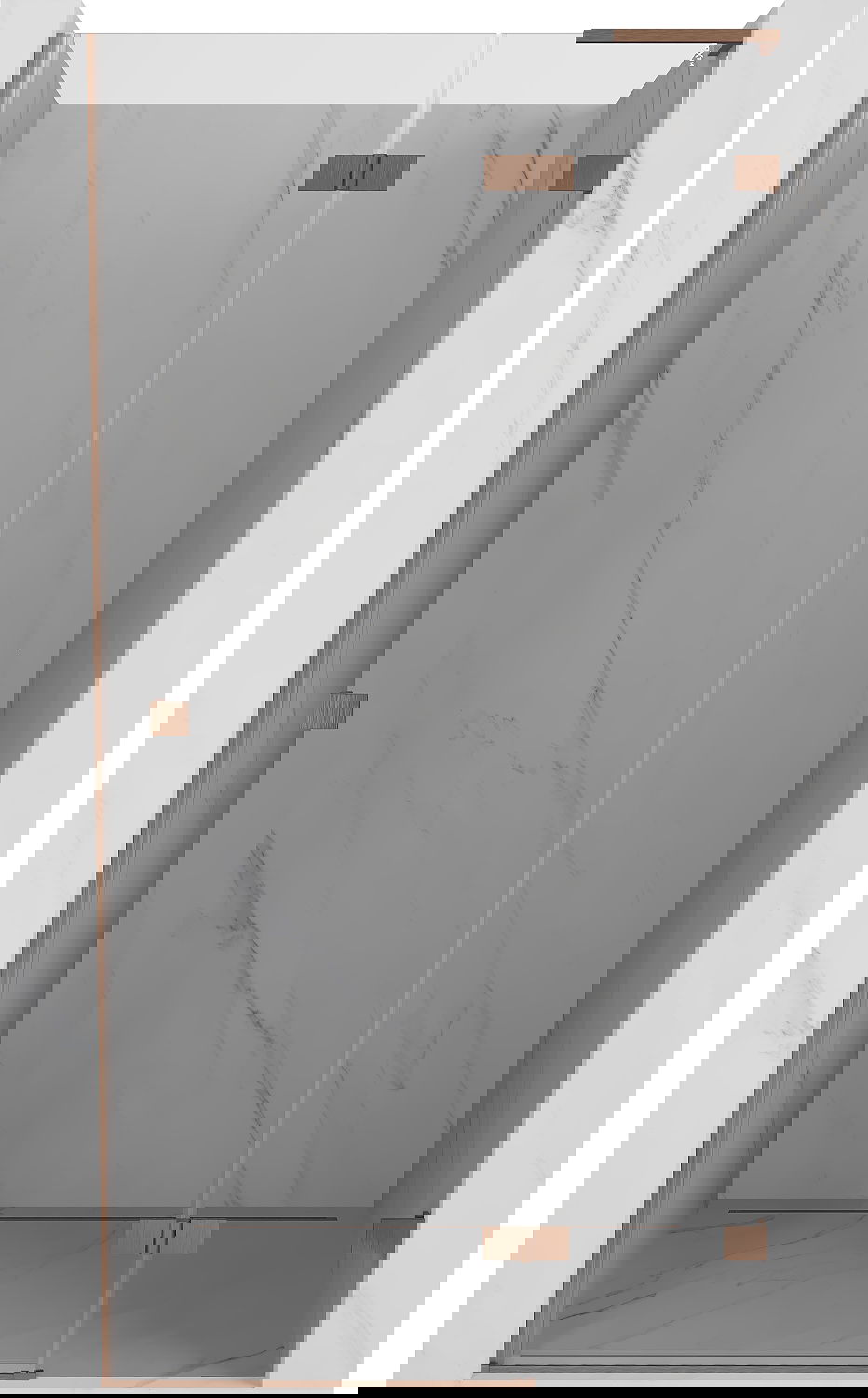 Οι σφιγκτήρες και οι μεντεσέδες είναι κατασκευασμένοι από πολύ ανθεκτικό ορείχαλκο και επιπλέον δημιουργούν μια ευθυγραμμισμένη επιφάνεια γυαλιού. Είναι μια εξαιρετική επιλογή που συνδυάζει κομψότητα, ανθεκτικότητα και σύγχρονο σχεδιασμό. Χάρη σε αυτές τις λύσεις, η ντουζιέρα κερδίζει σε αισθητική και ταυτόχρονα διευκολύνουν τη διατήρηση της καθαριότητας.
