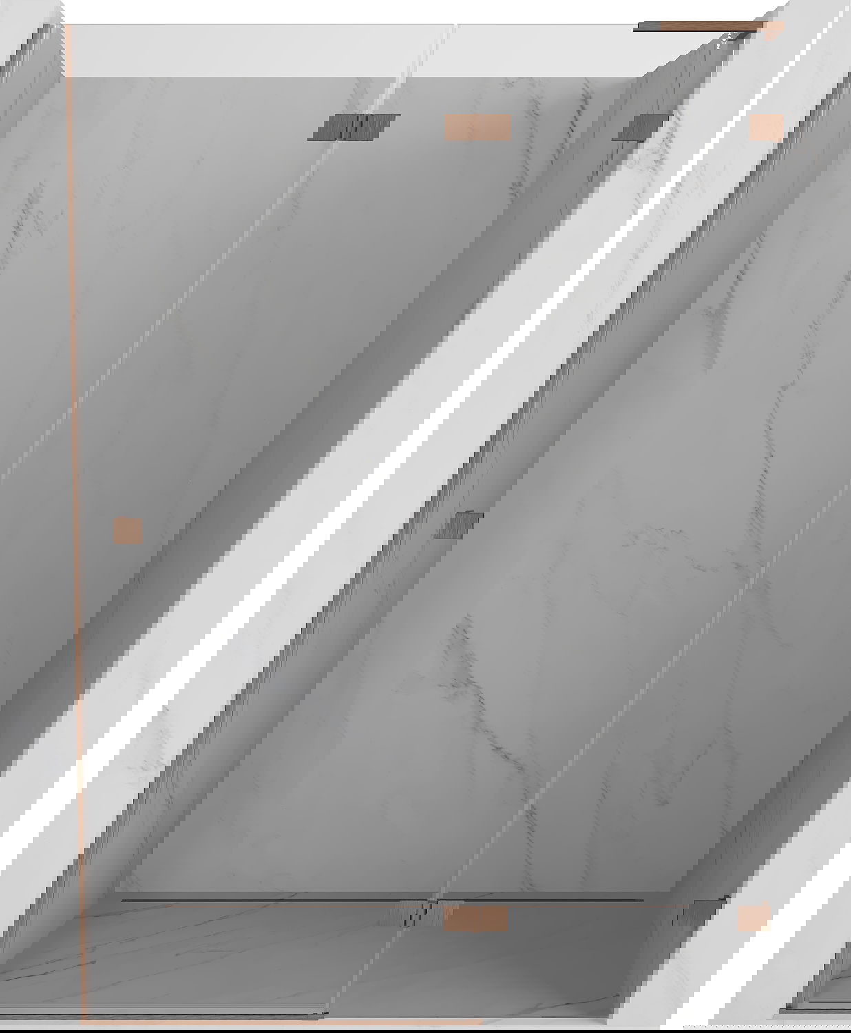 Οι σφιγκτήρες και οι μεντεσέδες είναι κατασκευασμένοι από πολύ ανθεκτικό ορείχαλκο και επιπλέον δημιουργούν μια ευθυγραμμισμένη επιφάνεια γυαλιού. Είναι μια εξαιρετική επιλογή που συνδυάζει κομψότητα, ανθεκτικότητα και σύγχρονο σχεδιασμό. Χάρη σε αυτές τις λύσεις, η ντουζιέρα κερδίζει σε αισθητική και ταυτόχρονα διευκολύνουν τη διατήρηση της καθαριότητας.