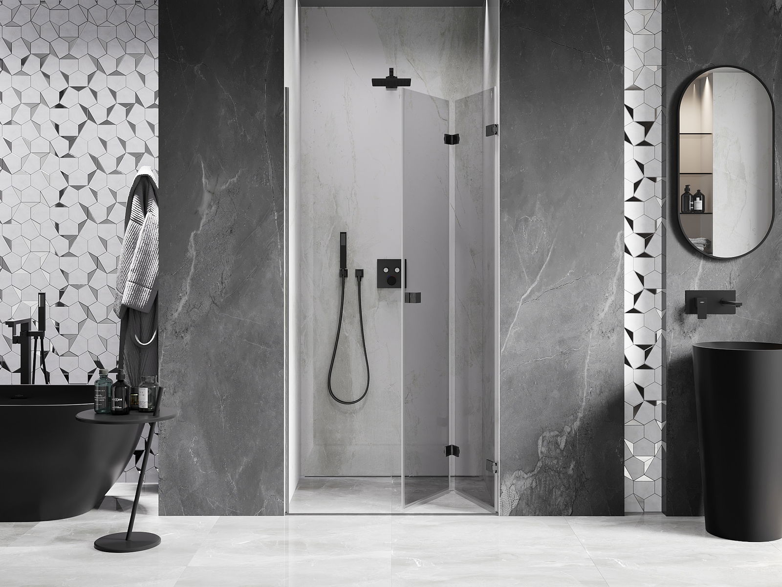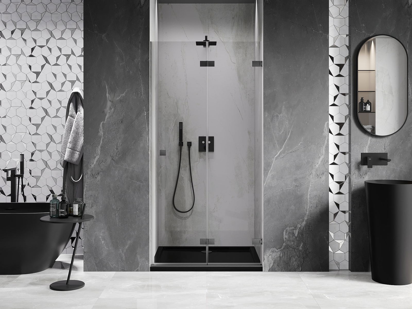 Η δυνατότητα πτύχωσης των πορτών, τόσο προς τα έξω όσο και προς τα μέσα, επιτρέπει την απόκτηση περισσότερου χώρου όταν δεν χρησιμοποιείται το ντους. Αυτή είναι μια ιδανική λύση για μικρότερα μπάνια, αξιοποιώντας στο μέγιστο το διαθέσιμο χώρο.