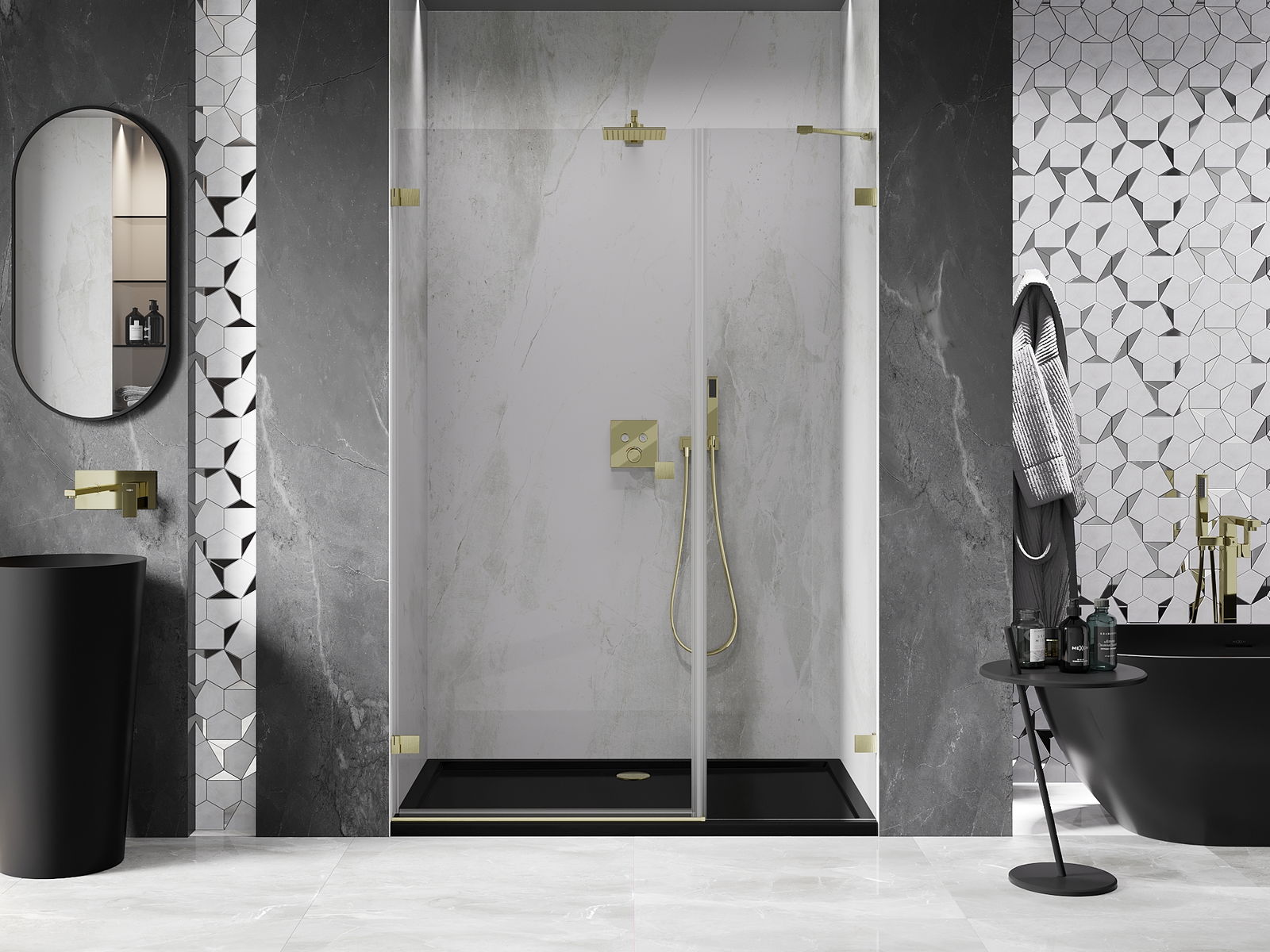 Mexen Lunar-B Αριστερές ανοιγόμενες πόρτες ντους 150 cm, διαφανείς, χρυσαφί