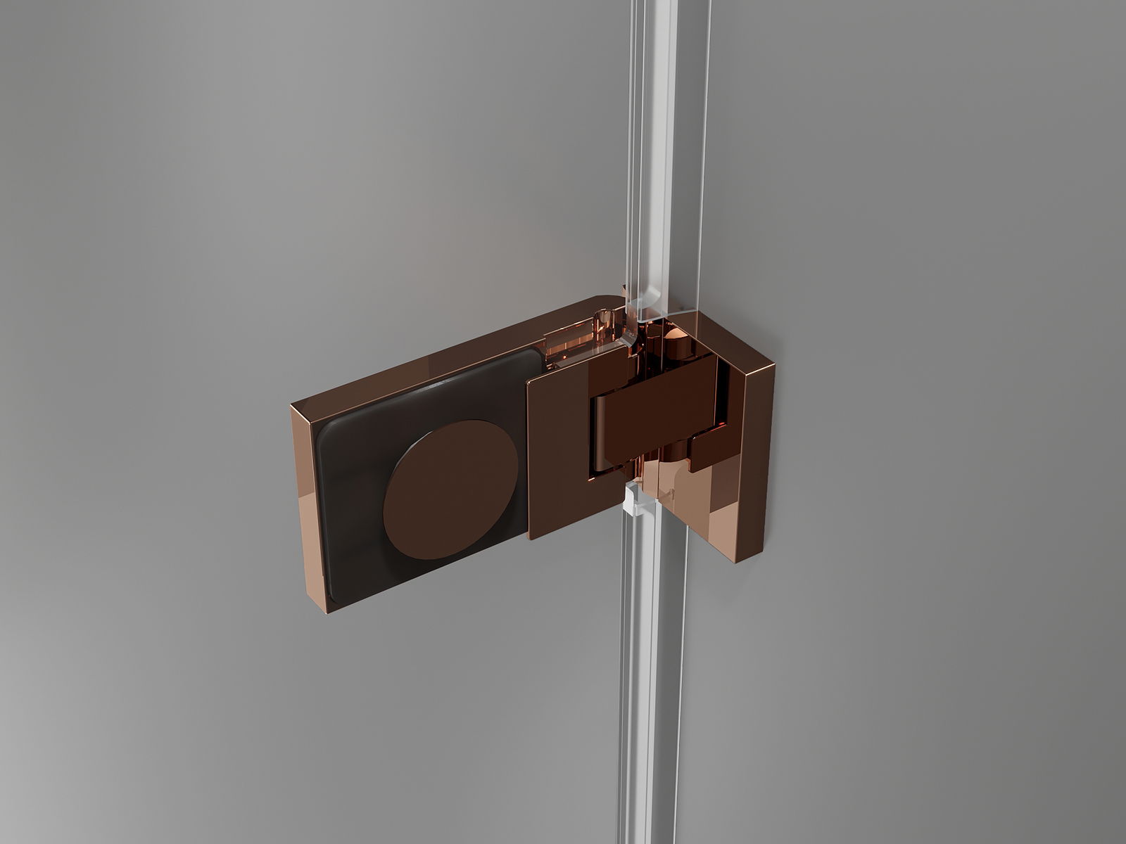 Ορειχάλκινα λαβές και μεντεσέδες εμβατεριωμένα στη γυάλινη επιφάνεια