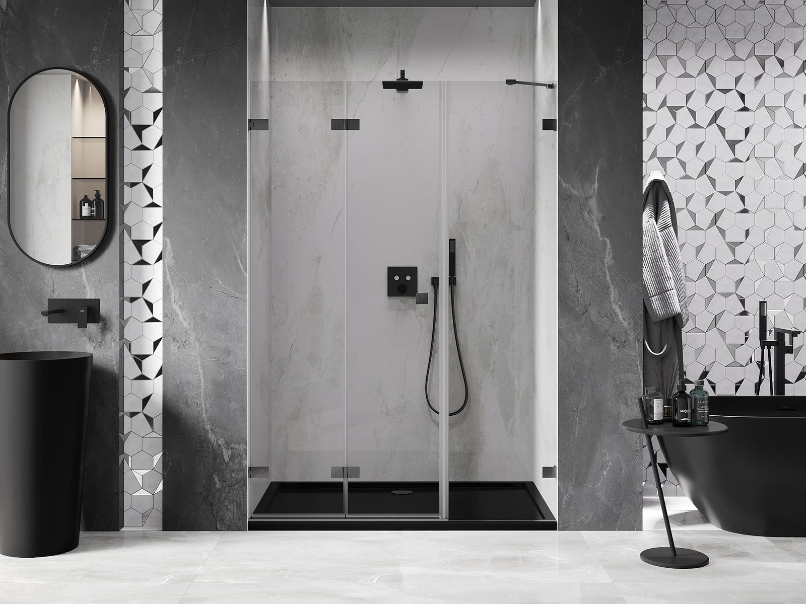 Η δυνατότητα πτύχωσης των πορτών, τόσο προς τα έξω όσο και προς τα μέσα, επιτρέπει την απόκτηση περισσότερου χώρου όταν δεν χρησιμοποιείται το ντους. Αυτή είναι μια ιδανική λύση για μικρότερα μπάνια, αξιοποιώντας στο μέγιστο το διαθέσιμο χώρο.