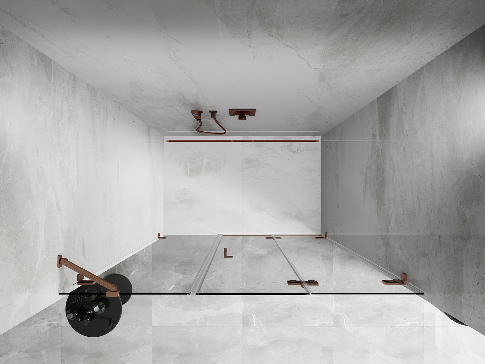 Οι σφιγκτήρες και οι μεντεσέδες είναι κατασκευασμένοι από πολύ ανθεκτικό ορείχαλκο και επιπλέον δημιουργούν μια ευθυγραμμισμένη επιφάνεια γυαλιού. Είναι μια εξαιρετική επιλογή που συνδυάζει κομψότητα, ανθεκτικότητα και σύγχρονο σχεδιασμό. Χάρη σε αυτές τις λύσεις, η ντουζιέρα κερδίζει σε αισθητική και ταυτόχρονα διευκολύνουν τη διατήρηση της καθαριότητας.