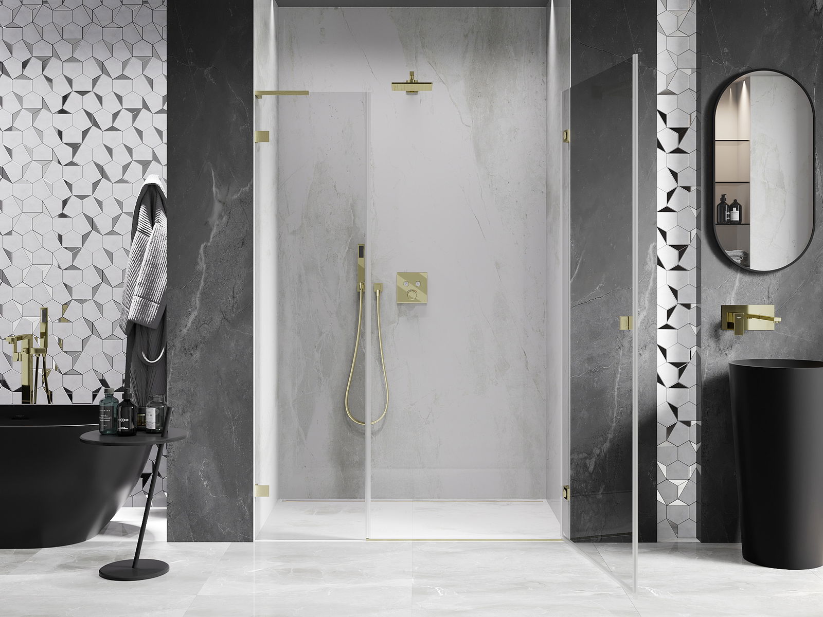 Οι σφιγκτήρες είναι κατασκευασμένοι από πολύ ανθεκτικό ορείχαλκο και επιπλέον δημιουργούν μια ευθυγραμμισμένη επιφάνεια γυαλιού. Είναι μια εξαιρετική επιλογή που συνδυάζει κομψότητα, ανθεκτικότητα και μοντέρνο σχεδιασμό. Με τέτοιες λύσεις, η ντουζιέρα αποκτά αισθητική, ενώ ταυτόχρονα διευκολύνεται η διατήρηση της καθαριότητας.