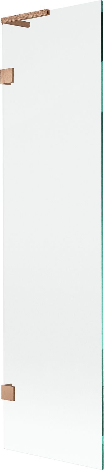 Οι σφιγκτήρες και οι μεντεσέδες είναι κατασκευασμένοι από πολύ ανθεκτικό ορείχαλκο και επιπλέον δημιουργούν μια ευθυγραμμισμένη επιφάνεια γυαλιού. Είναι μια εξαιρετική επιλογή που συνδυάζει κομψότητα, ανθεκτικότητα και σύγχρονο σχεδιασμό. Χάρη σε αυτές τις λύσεις, η ντουζιέρα κερδίζει σε αισθητική και ταυτόχρονα διευκολύνουν τη διατήρηση της καθαριότητας.