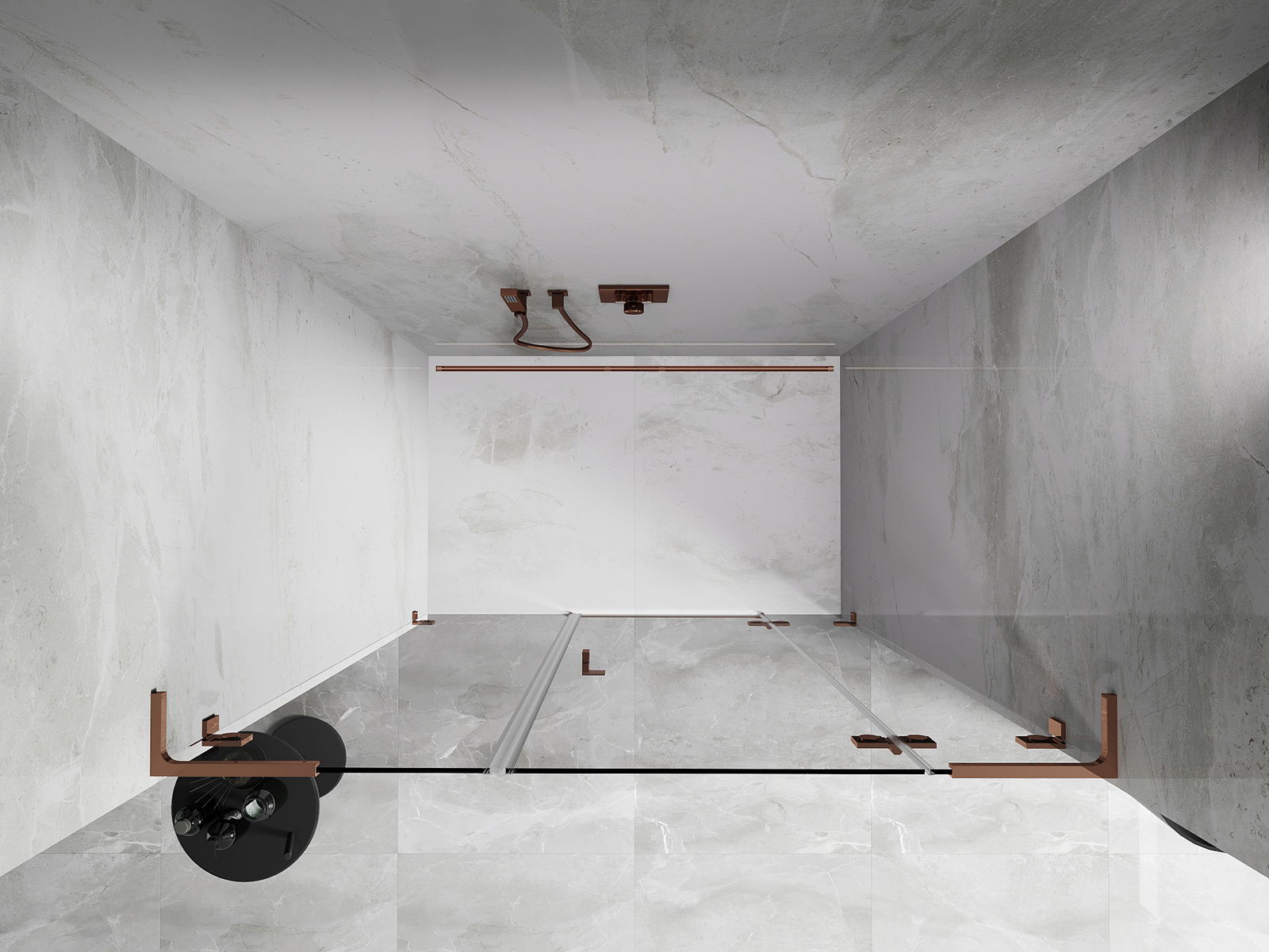 Οι σφιγκτήρες και οι μεντεσέδες είναι κατασκευασμένοι από πολύ ανθεκτικό ορείχαλκο και επιπλέον δημιουργούν μια ευθυγραμμισμένη επιφάνεια γυαλιού. Είναι μια εξαιρετική επιλογή που συνδυάζει κομψότητα, ανθεκτικότητα και σύγχρονο σχεδιασμό. Χάρη σε αυτές τις λύσεις, η ντουζιέρα κερδίζει σε αισθητική και ταυτόχρονα διευκολύνουν τη διατήρηση της καθαριότητας.