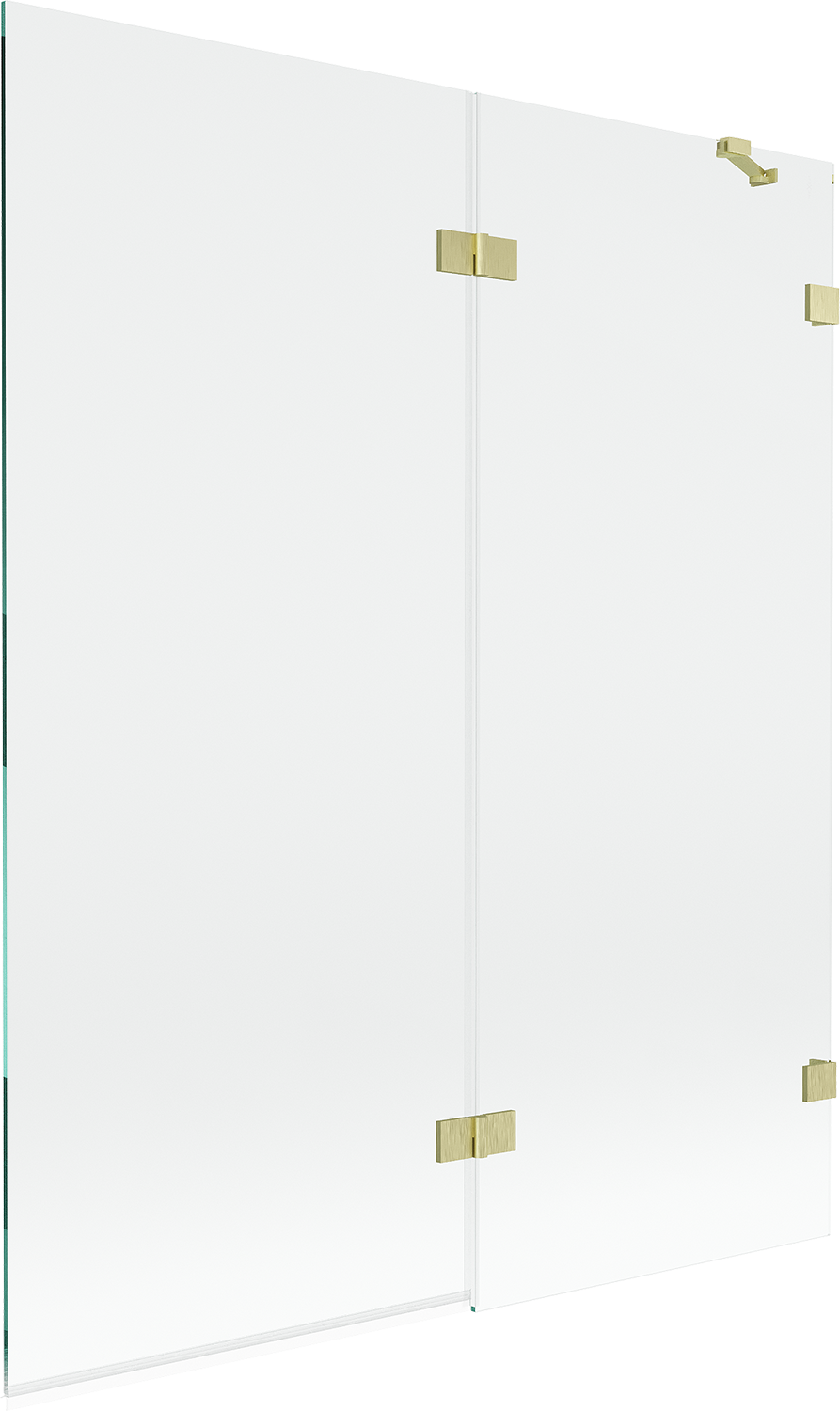 Mexen Lunar δίφυλλη δεξιά μπανιέρας 140 x 150 cm, διάφανη, χρυσό βουρτσισμένο