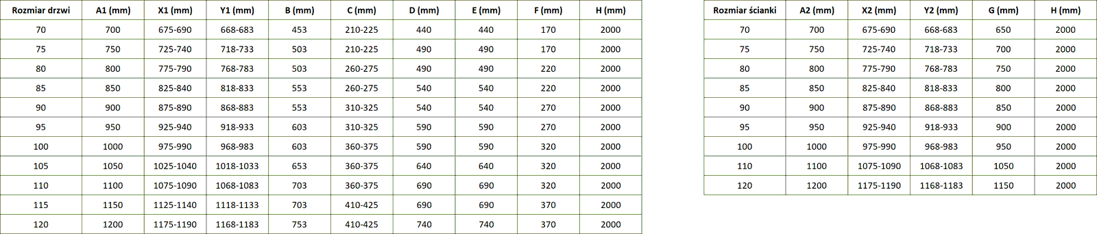 Μέγεθος: 95x70 cm (δεξιά πόρτα 95 cm, τοίχωμα 70 cm)