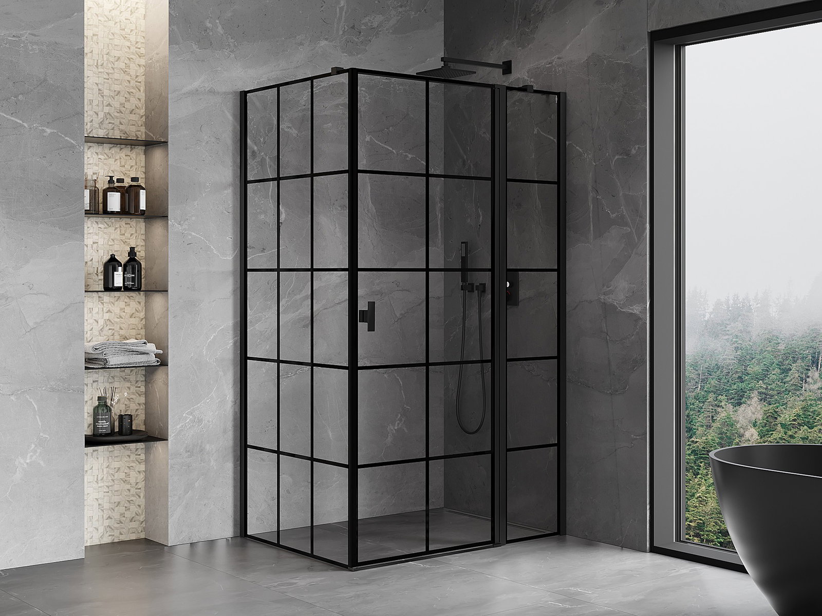 Mexen Rio τετράγωνη καμπίνα ντους 90 x 90 εκ., διάφανη, μαύρη - 860-090-090-70-00