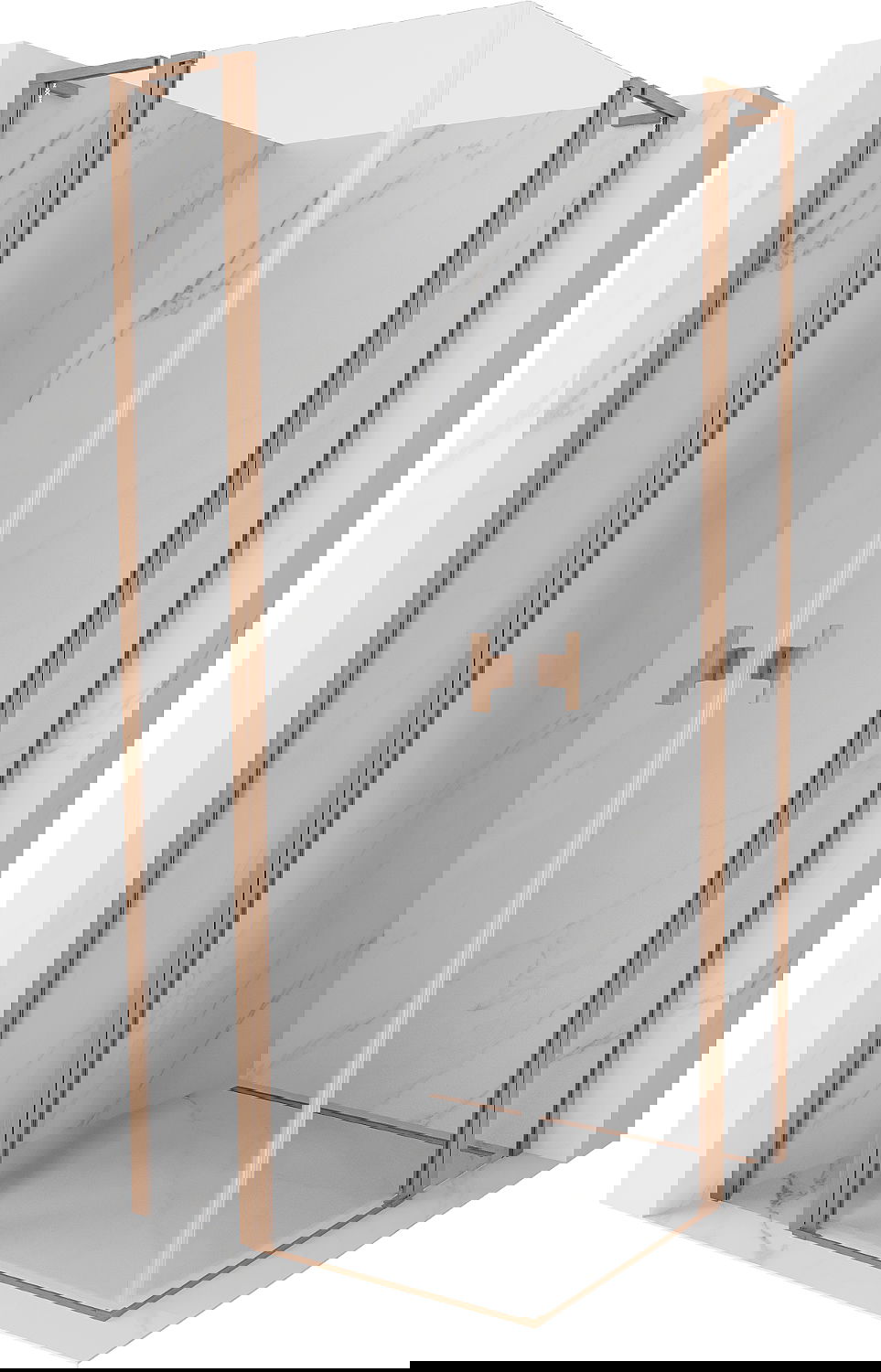 Mexen Mist L Δίφυλλη ντουζιέρα 100 x 100 cm, διάφανη, βουρτσισμένος χαλκός