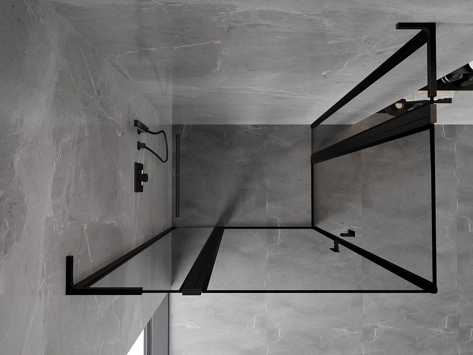 Mexen Mist L Διπλή καμπίνα ντους αναδιπλούμενη 110 x 90 εκ., μαύρο πλαίσιο,
