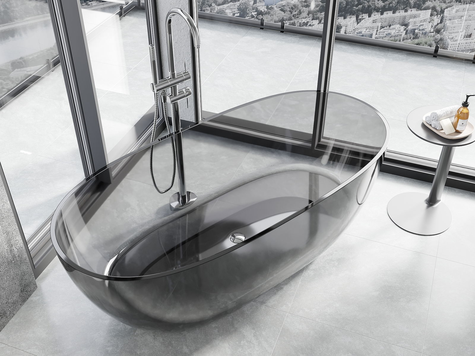 Πρόκειται για ένα σύγχρονο υλικό που συνδυάζει κομψή εμφάνιση με υψηλή αντοχή. Είναι ανθεκτικό στις μηχανικές φθορές, εύκολο στο καθάρισμα και ευχάριστο στην αφή. Η διάφανη μορφή και το λεπτό χείλος της μπανιέρας του προσδίδουν ελαφρότητα και μοναδικό χαρακτήρα, δημιουργώντας ένα εντυπωσιακό στοιχείο στη διαρρύθμιση του μπάνιου.