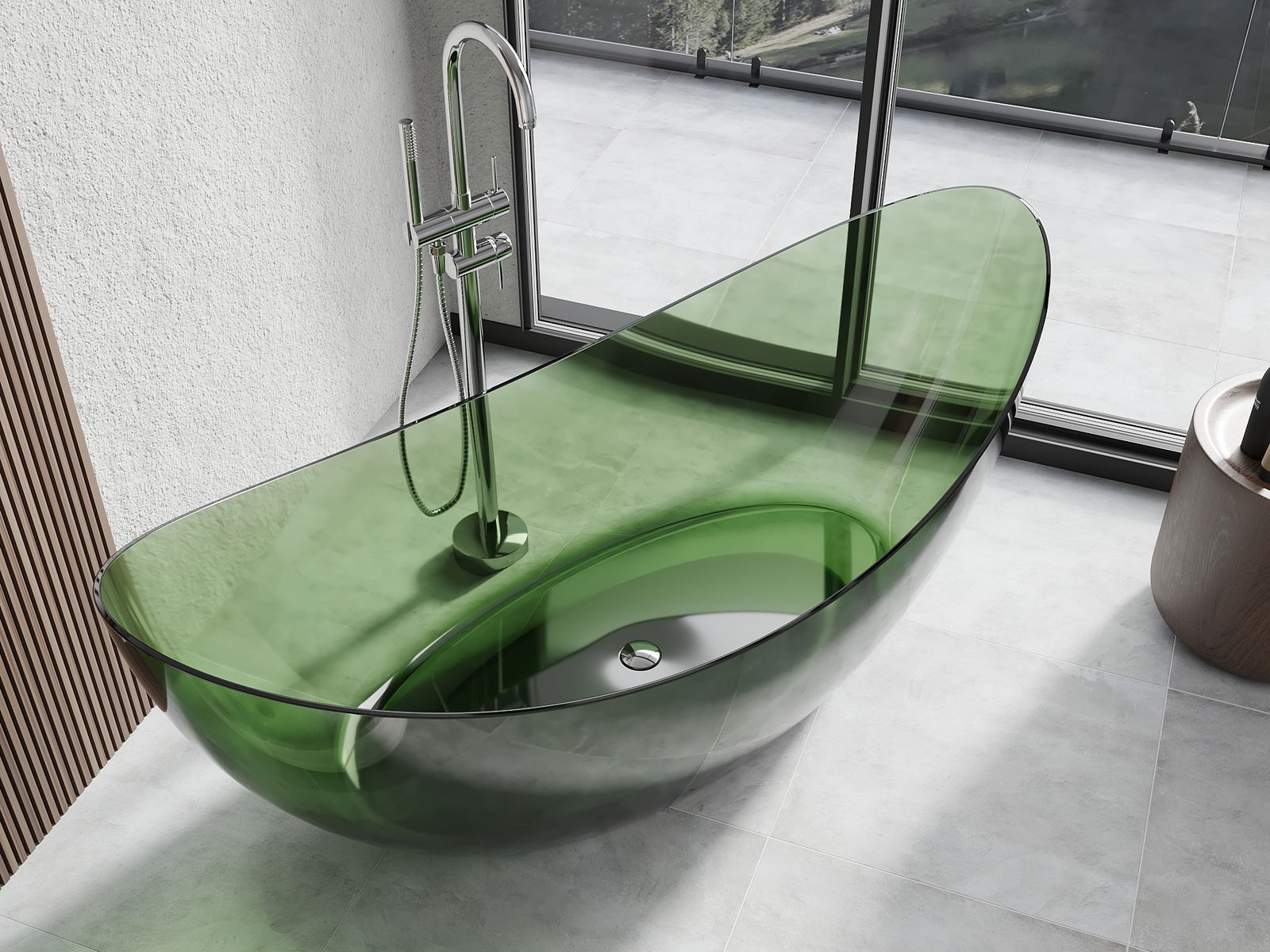 Πρόκειται για ένα σύγχρονο υλικό που συνδυάζει κομψή εμφάνιση με υψηλή αντοχή. Είναι ανθεκτικό στις μηχανικές φθορές, εύκολο στο καθάρισμα και ευχάριστο στην αφή. Η διάφανη μορφή και το λεπτό χείλος της μπανιέρας του προσδίδουν ελαφρότητα και μοναδικό χαρακτήρα, δημιουργώντας ένα εντυπωσιακό στοιχείο στη διαρρύθμιση του μπάνιου.
