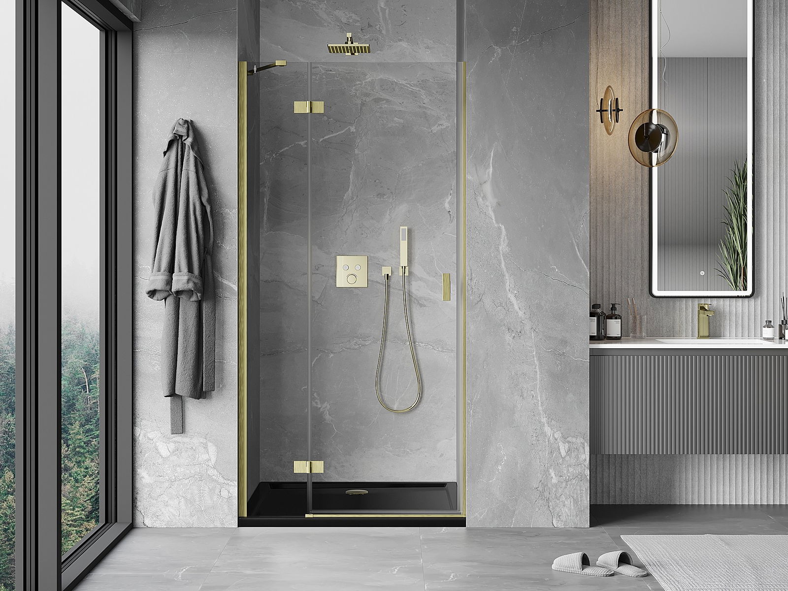 Mexen Mist-H αριστερή ανοιγόμενη πόρτα ντουζιέρας 80 cm, διαφανής, χρυσή